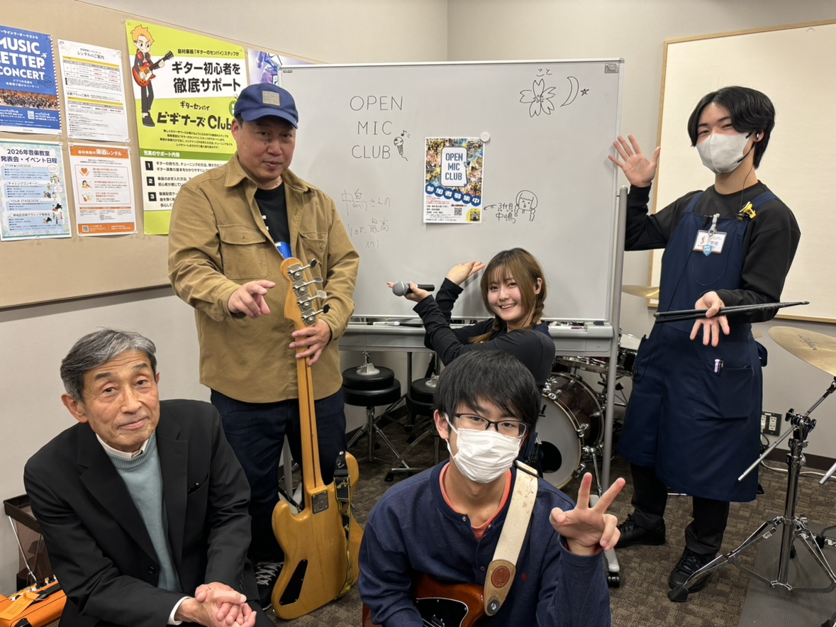 堺店の『OPEN MIC CLUB』は、学生から大人の方まで幅広い年代のメンバーで行っております!年齢なんて関係ございません!音楽をしている方同士全員で楽しみましょう!!