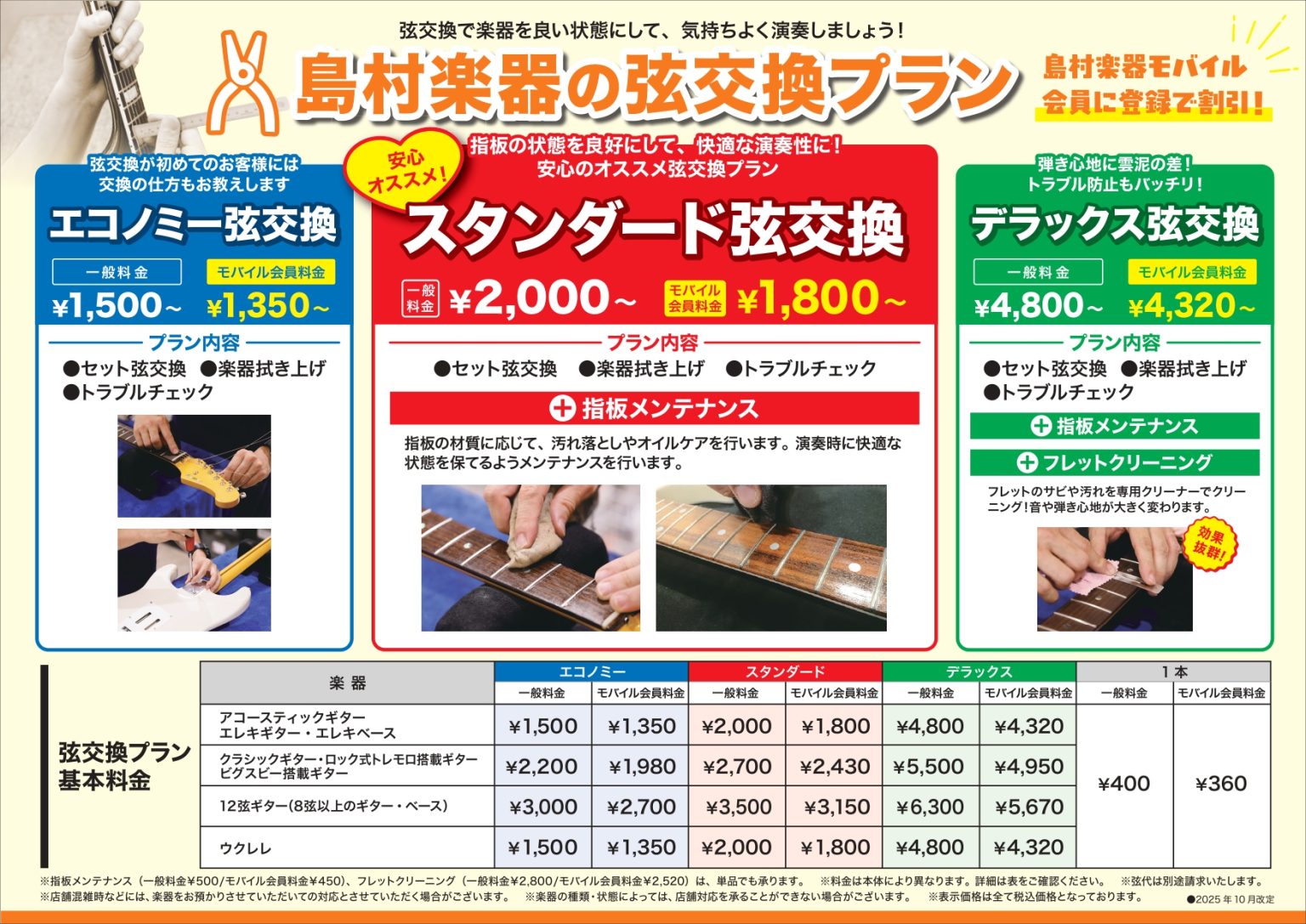 ※店舗の混雑状況や対応可能なスタッフが不在の場合は、即日に弦交換を行えない場合がございます。