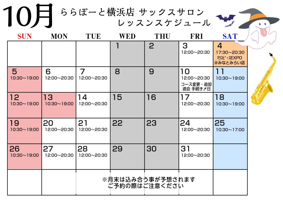 10/4(土):マウスピースEXPO(みなとみらい店)開催の為、予約可能時間に変更があります。