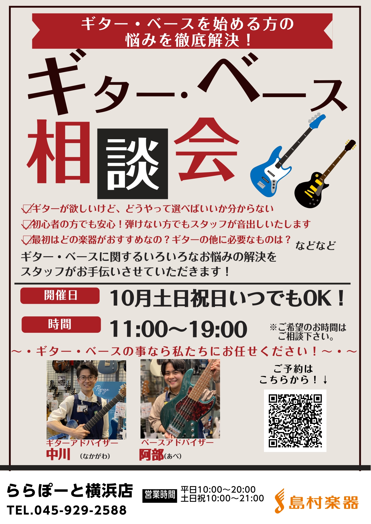 ![CONTENTSこれから楽器デビューするあなたに!ギターアドバイザーによる「ギター・ベース選び方相談会」を実施します詳細・お問い合わせ【ギター・ベース総合】ギター・ベース選びはららぽーと横浜店へこれから楽器デビューするあなたに!ギターアドバイザーによる「ギター・ベース選び方相談会」を実施します らら […]](https://www.shimamura.co.jp/shop/l-yokohama/wp-content/uploads/sites/111/2025/03/20250302-product_shima250301-0195-1_template_pdf_page-0001-1.jpg)