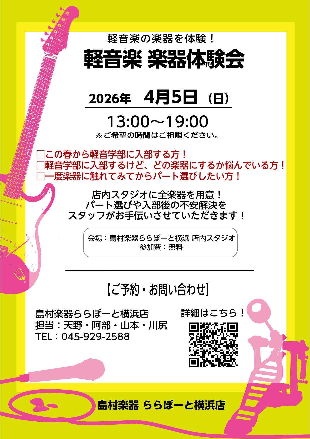 この春から楽器デビューをされる学生の皆様を、島村楽器ららぽーと横浜店は全力サポートさせていただきます!