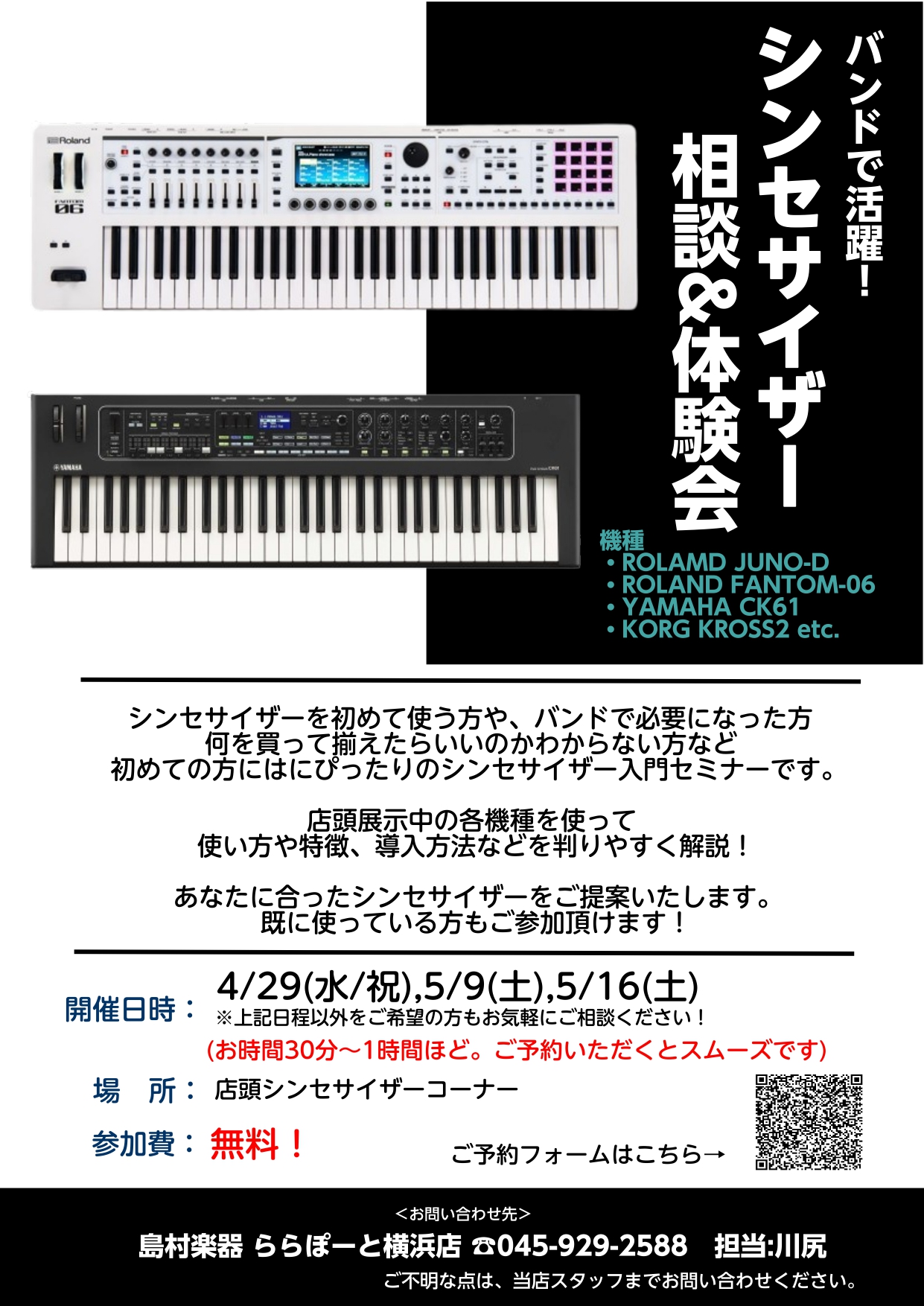 ららぽーと横浜店のシンセサイザー担当・川尻がじっくりご案内します!