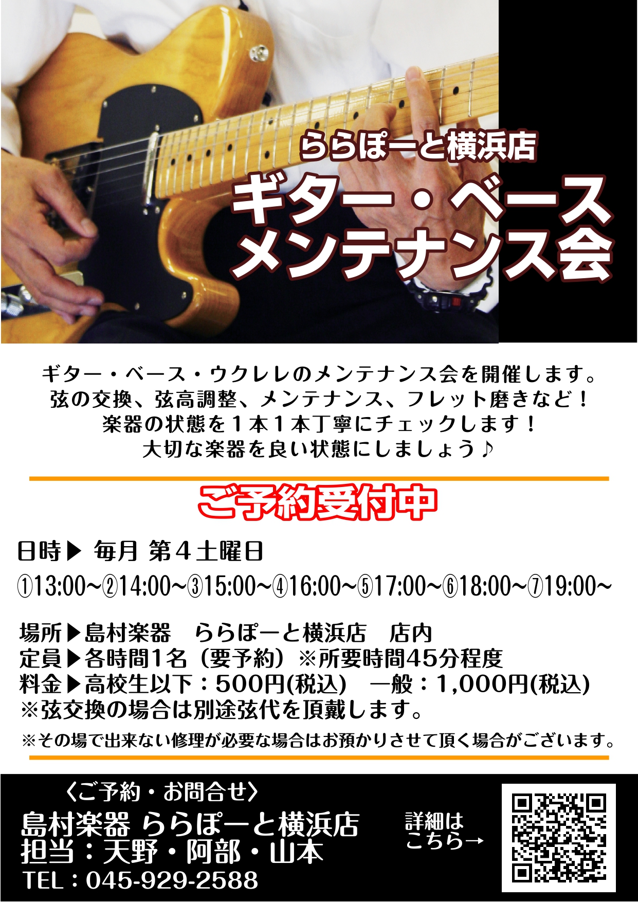 この度ららぽーと横浜店では、ギター&ベースのメンテナンス会を実施いたします。