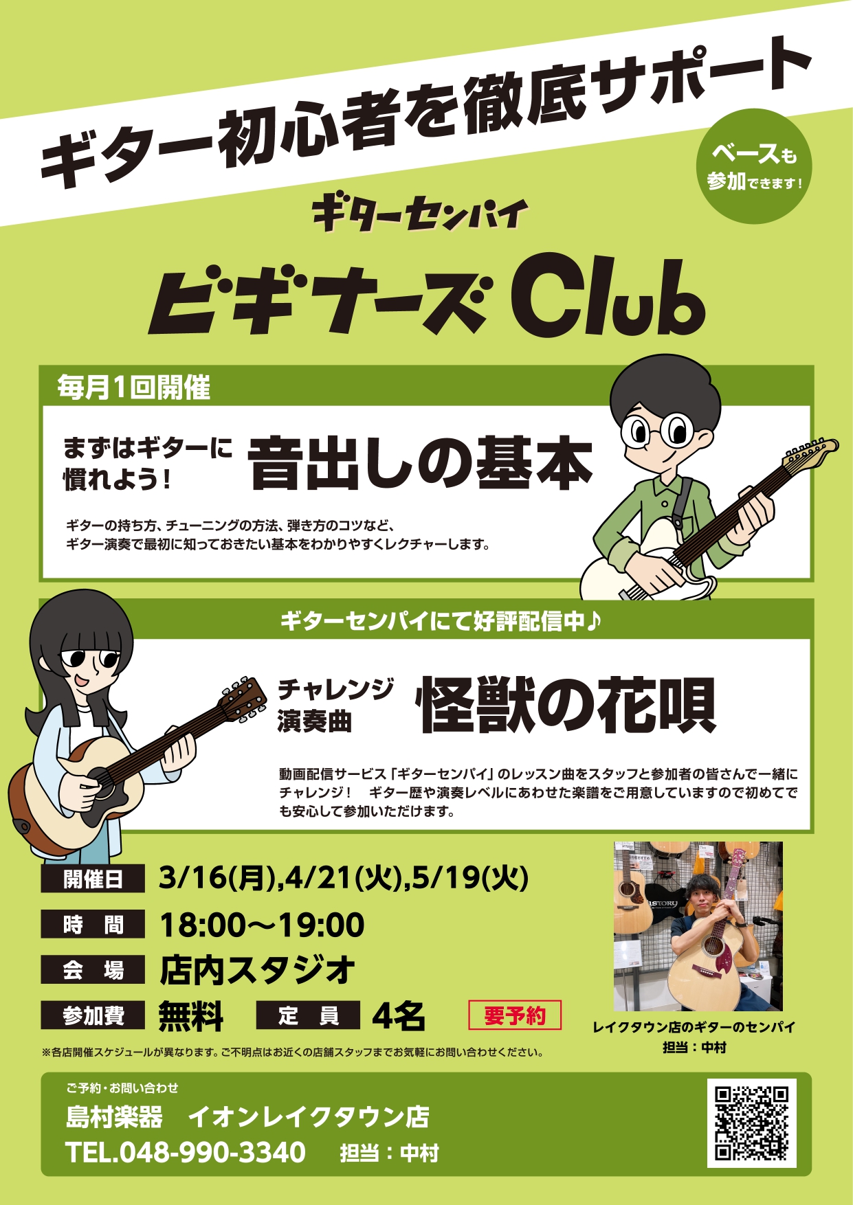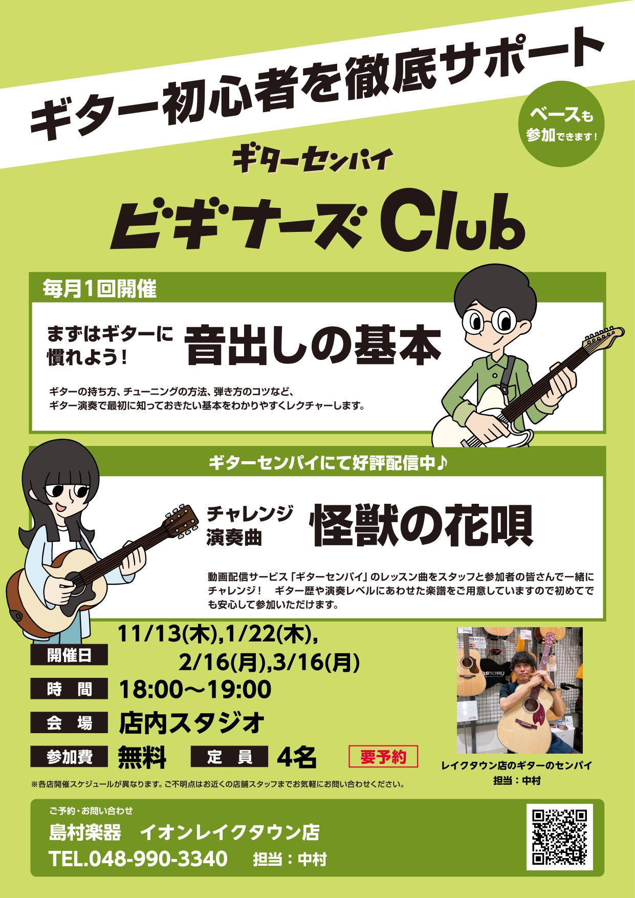 以前よりギターアドバイザー中村が毎月開催していたビギナーズ倶楽部がリニューアルします!
