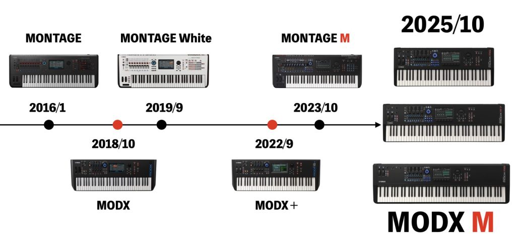 MODX Mシリーズは、2018年発売の初代MODX、そして2022年のマイナーアップデート版であるMODX+を経て登場した、待望のメジャーアップデートモデルです。
