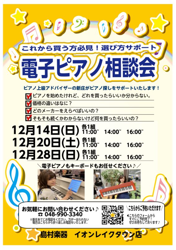 2025年11月・12月最新機種でご案内!埼玉・千葉・東京近辺でピアノをお探しの方必見!無料開催【ご予約受付中!】電子ピアノ相談会開催 レイクタウン電子ピアノお悩み解決相談会開催★