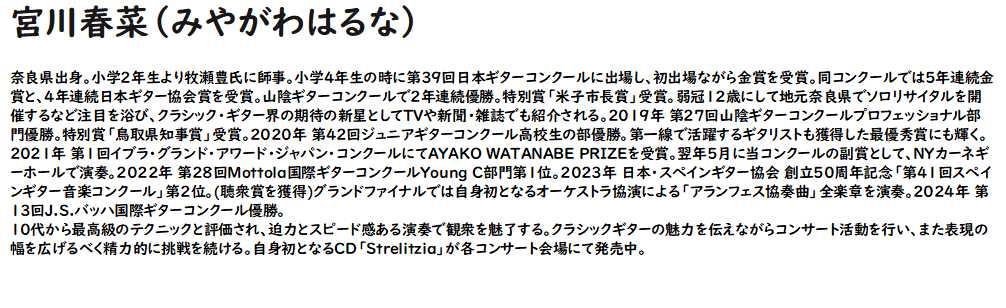 イベント | 【宮川春菜氏:展示クラシックギター弾き比べ演奏会】 |