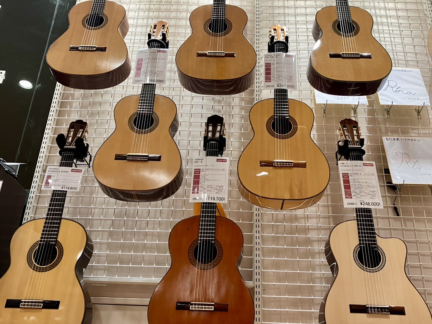 国内外の有名ブランドのクラシックギターを約70本展示し、全て試奏・購入可能です。