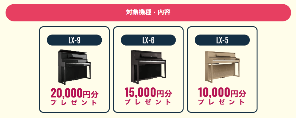 【電子ピアノキャンペーン情報】Roland LXシリーズご購入で、デジタルギフトを最高2万円分プレゼント🎁