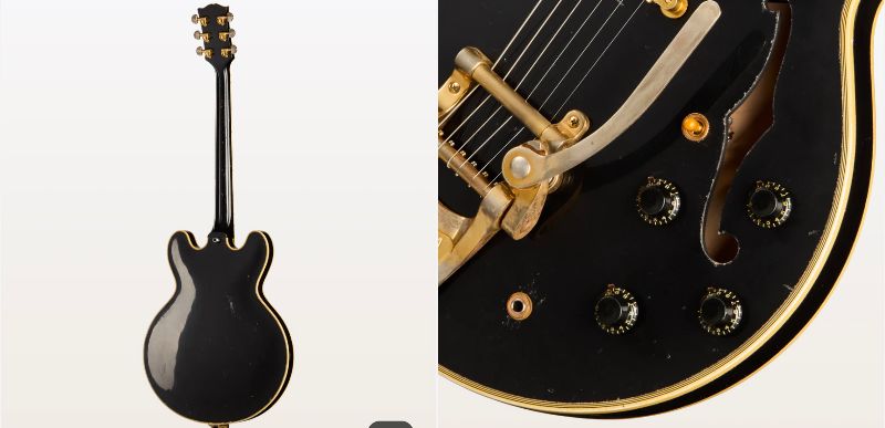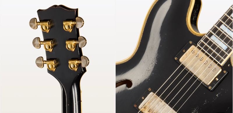 キース・リチャーズ氏が1960年製ES-355を初めて使用したのは1969年で、それ以降ツアーや『スティッキー・フィンガーズ』や『メイン・ストリートのならず者』のレコーディングでも使われました。またライブでも頻繁に登場しておりこのギターもまたキース・リチャーズ氏を象徴する一本です。
