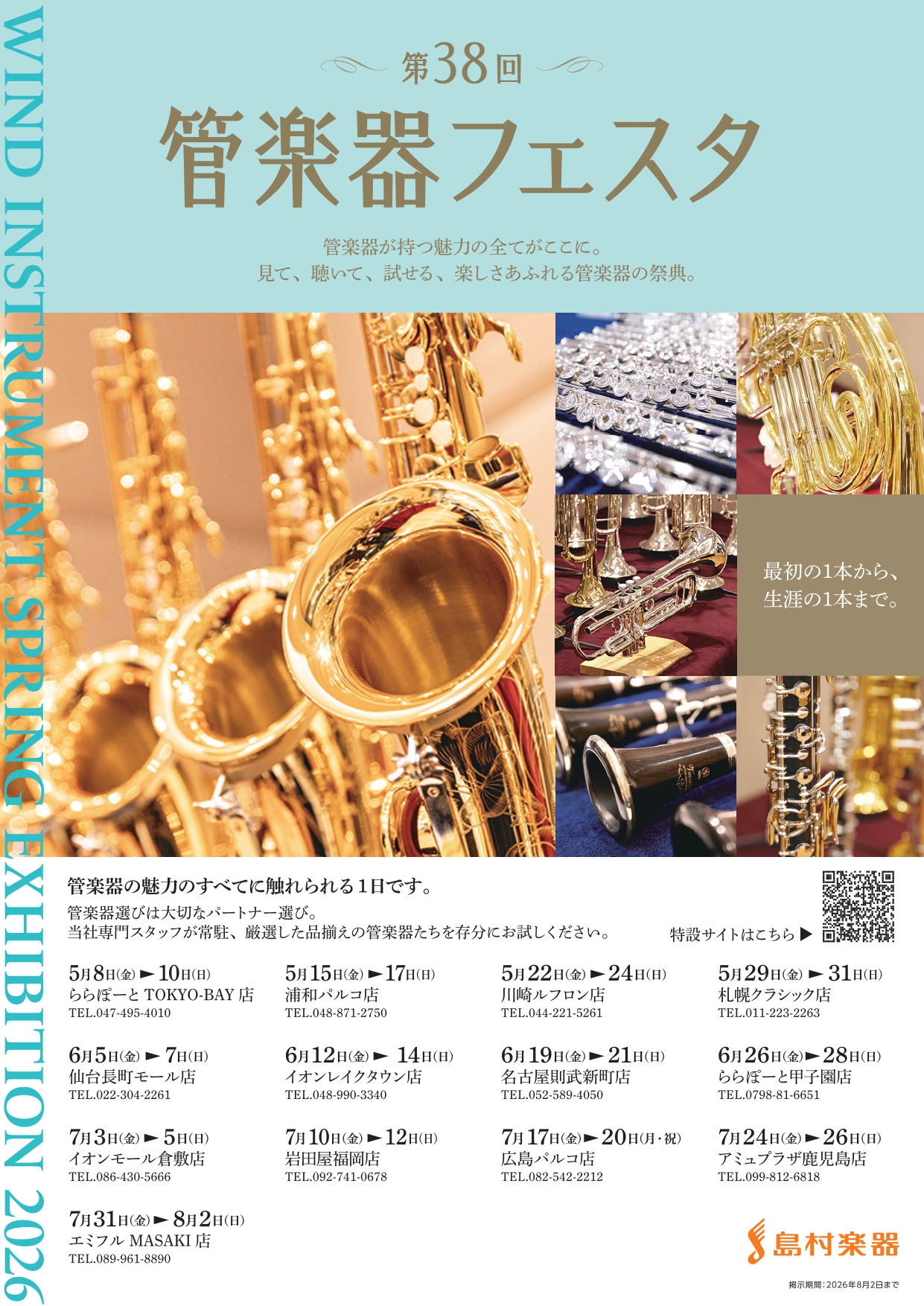 今年も「管楽器フェスタ」を島村楽器エミフルMASAKI店にて開催いたします!