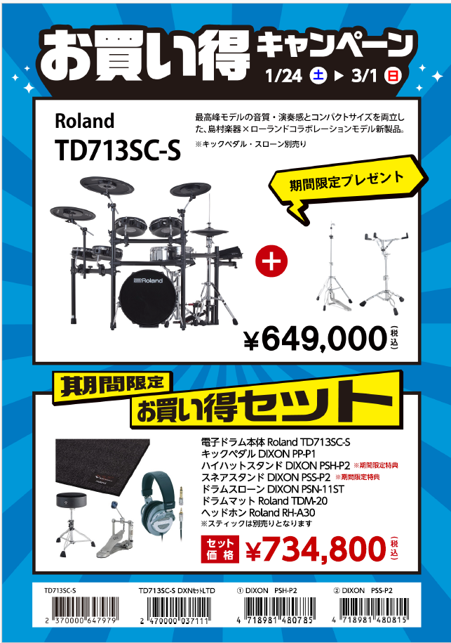 ◎電子ドラム購入の方へプレゼントキャンペーン島村楽器では電子ドラムをご購入された方を応援すべく、セットに含まれないハードウェア等をプレゼントしております♪ ◎セブンパーク天美店 電子ドラム ラインナップ 初心者さんからベテランのお方までお気軽に試打していただけます!ぜひお越しください。Roland〇 […]