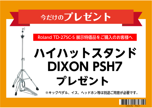ハイハットスタンドPSH7をプレゼント!(写真のハードウエアは展示用なので付属いたしません。)