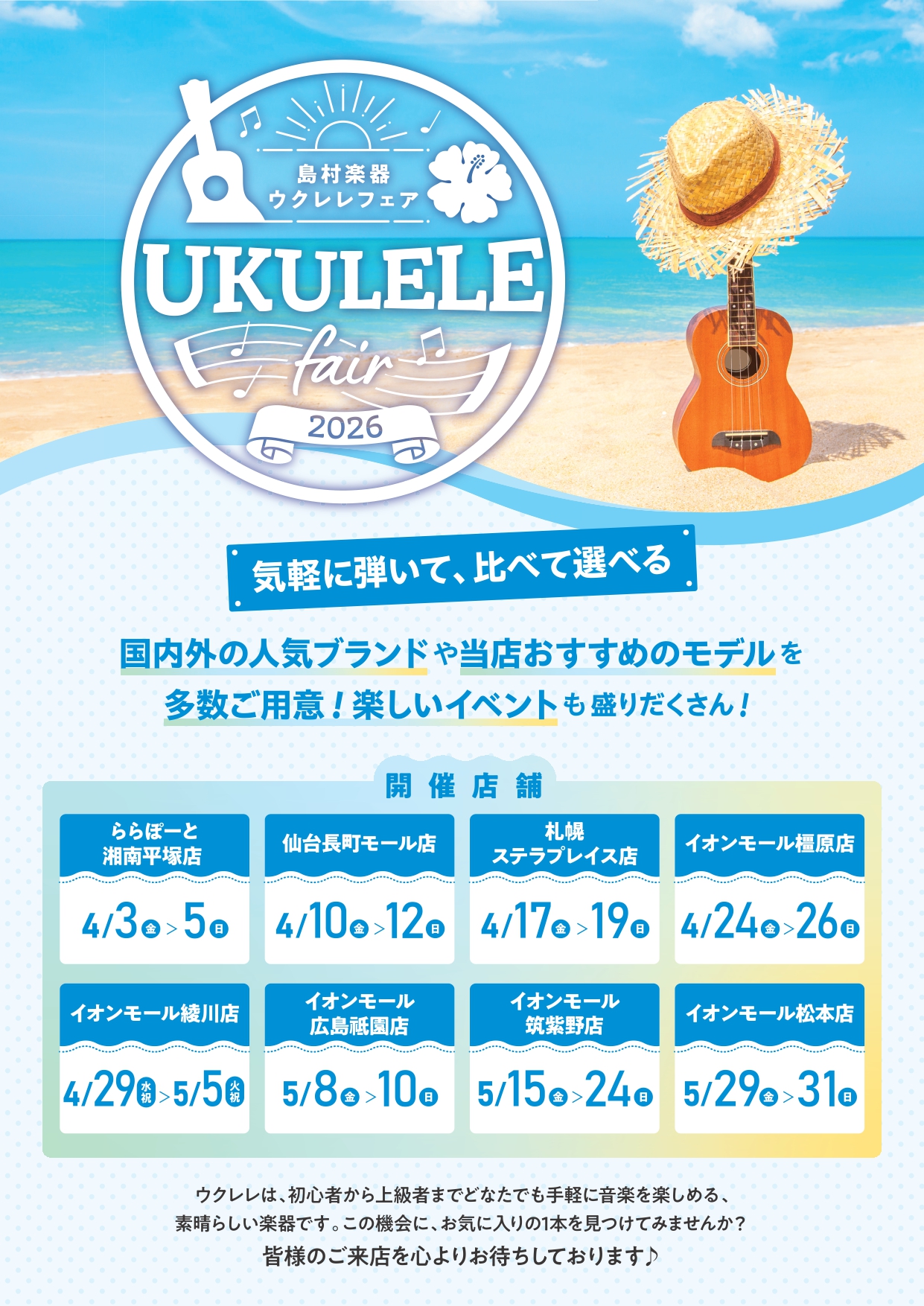 島村楽器松本パルコ店のウクレレ関連情報をメインにアコースティック楽器の情報を発信していきます!
