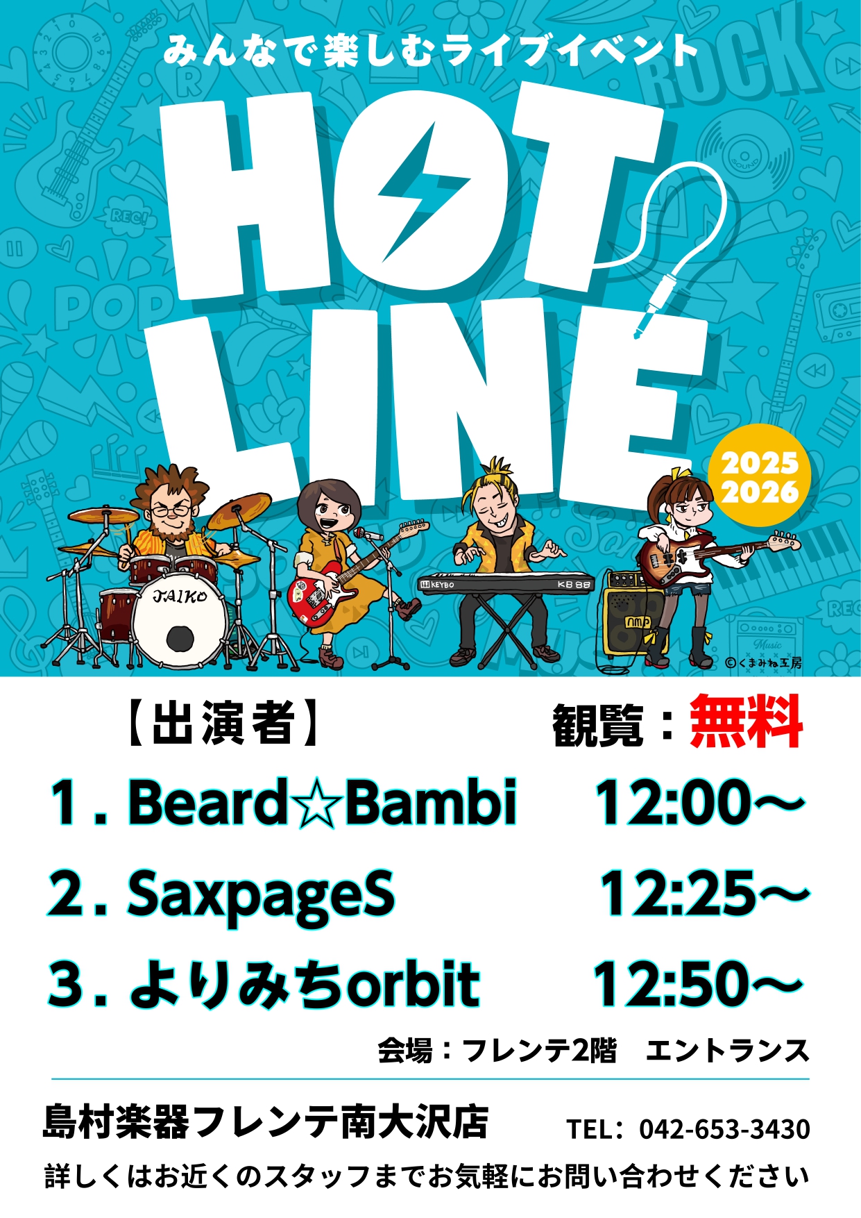 【HOTLINE 2025-2026】フレンテ南大沢店ライブ日程、出演者募集中!!