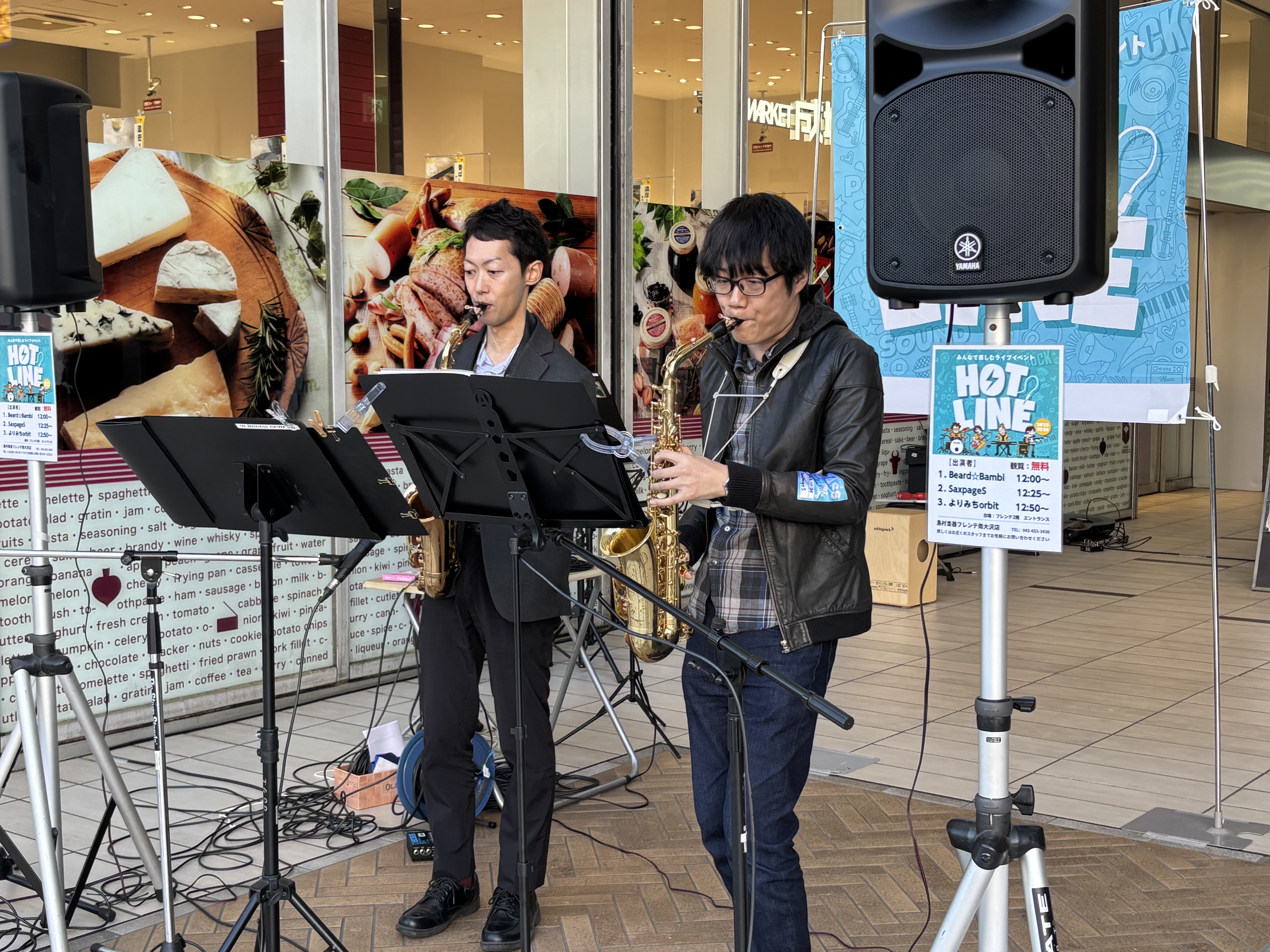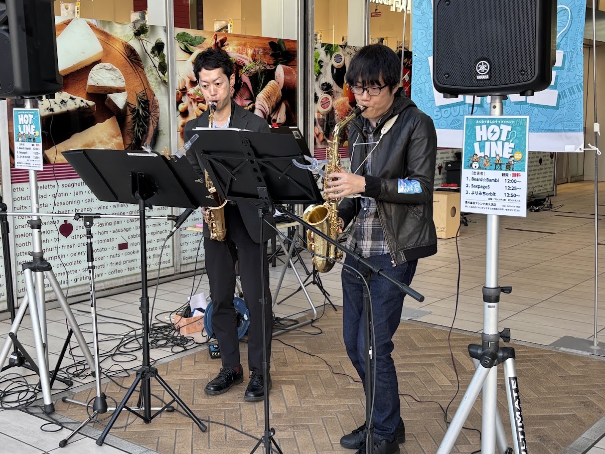 約半年前のアコパラにSAXソロでご出演のしまじろう様(右)、今回はご友人様と「SaxpageS(サクスページ)」というユニットを組まれ、SAXデュオでの演奏を披露いただきました!2本のアルトSAXが織りなす見事なハーモニー・カッコイイ音色が秋空のもと盛大に響き渡り、温かさ溢れる素敵なライブでした!