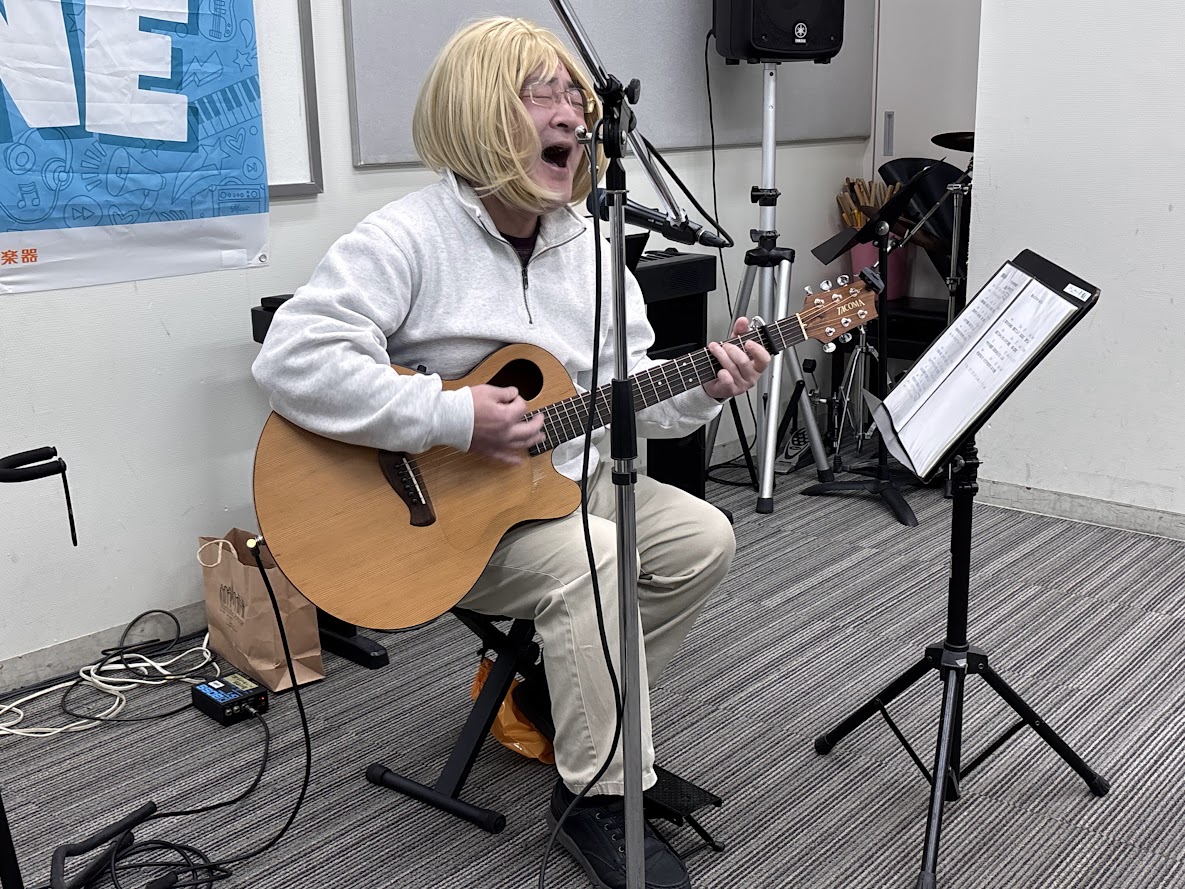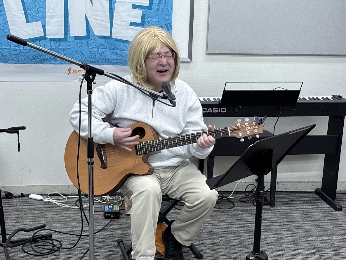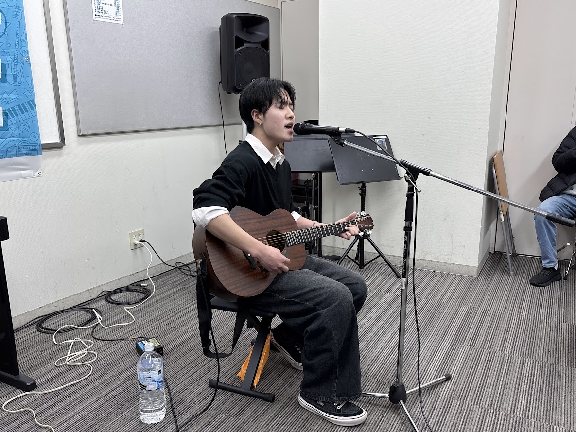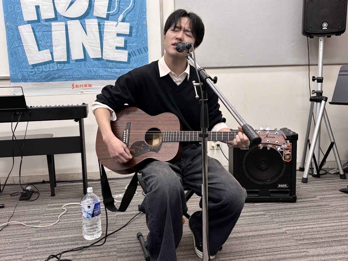 オープニングを飾っていただいたのは、当店ヴォーカル教室生徒のますいようた様。演奏曲は1曲入魂、「優里・ドライフラワー」を熱唱!約半年前のらぶたみ(南大沢店インストアライブの名称)での人生初となる弾き語りの曲も本日同様にドライフラワーでしたが、ヴォーカルもギターも格段に上達していて、何より堂々と演奏されている姿に胸が熱くなりました!
