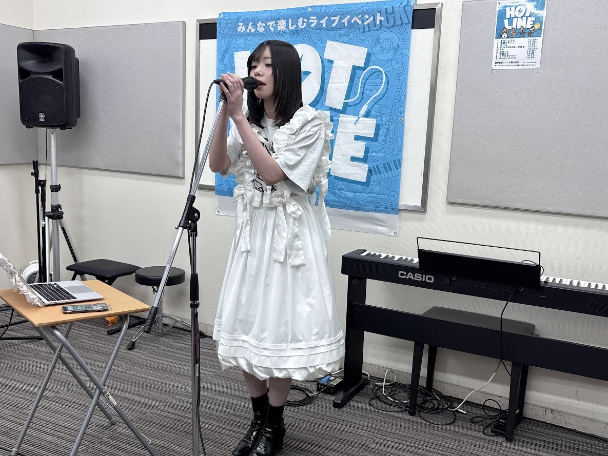全身の衣装もパソコンも可愛くコーディネートが施され、DTMで作成したオリジナル曲をオケで流しマイク1本で独特の世界観を披露いただいた寺崎ひな様!「たぶん今日の出演者の中で1番変なキャラで~す」「自分でパソコンで曲作ったんだよ~凄くな~い?」と独特な世界観のMCに惹きつけられ、演奏が始まると非常にクオリティの高い曲と透明感のあるヴォーカルで会場を魅了し、素敵なライブでした!