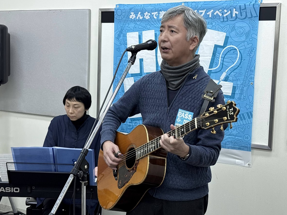 12月に続き、HOTLINE南大沢店ライブは2度目のご出演となるまひろ様。南大沢店以外でも橋本店や町田店など、今回のHOTLINEに計10回以上はご出演いただいたのではないでしょうか?沢山のご出演、本当にありがとうございます!まひろ様同様に、この後に登場するはなてん様と私浅川も浜田省吾さんファンで、本日も浜田省吾さんの曲でコーラスに参加させていただきました!