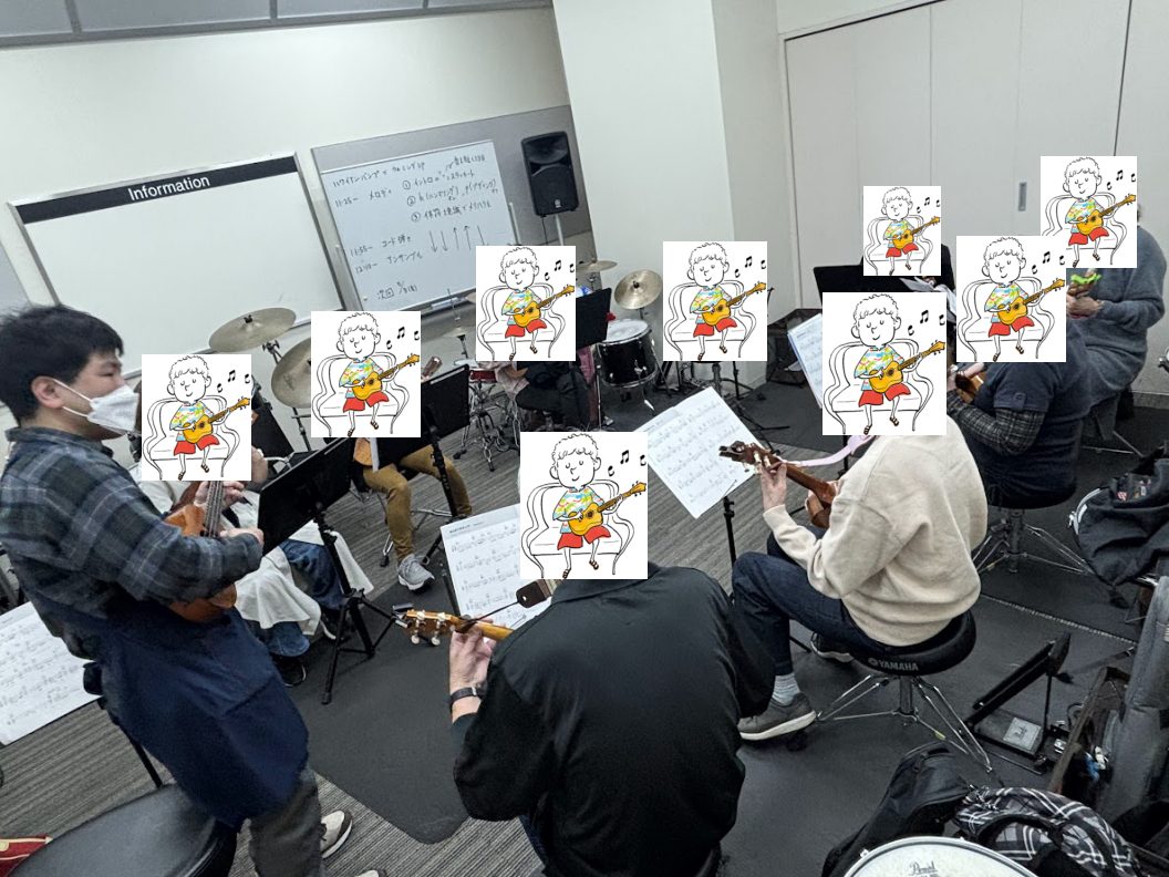 4月3日(金)ウクレレサークルのメンバー皆様で、キテレツ大百科のエンディングソング「はじめてのチュウ」をアンサンブルで演奏しました!