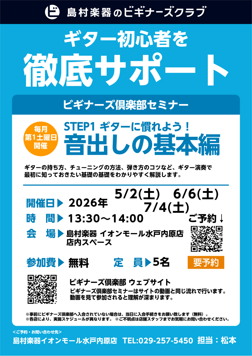 こんにちは!水戸内原店のギタービギナーズ担当の、松本です!