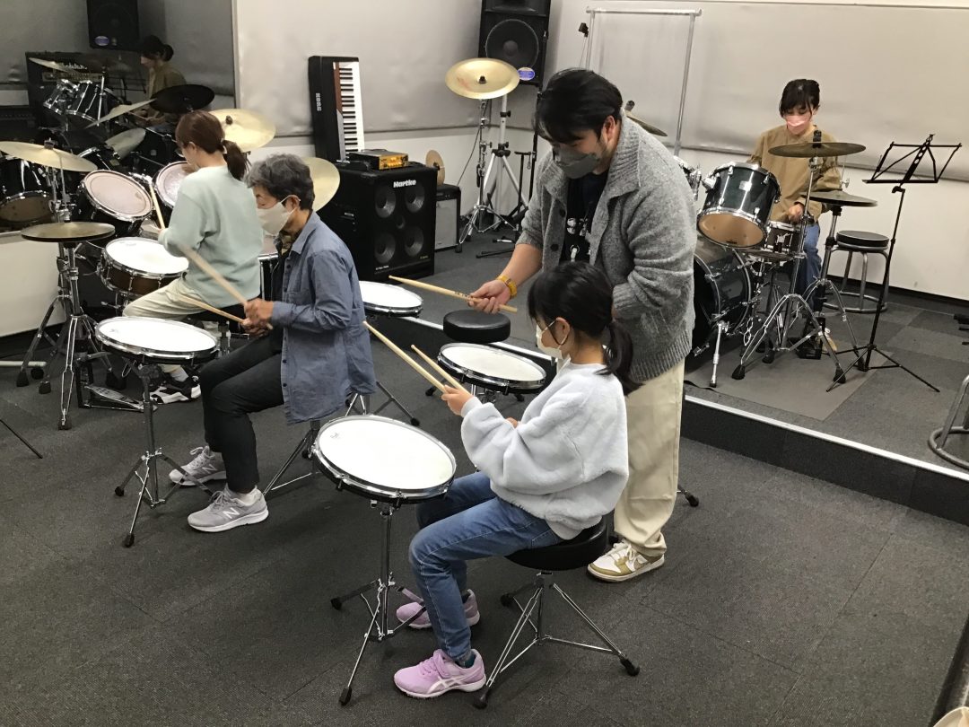 年齢に関係なく楽しくみんなで練習できるのもドラムレッスンの魅力です。