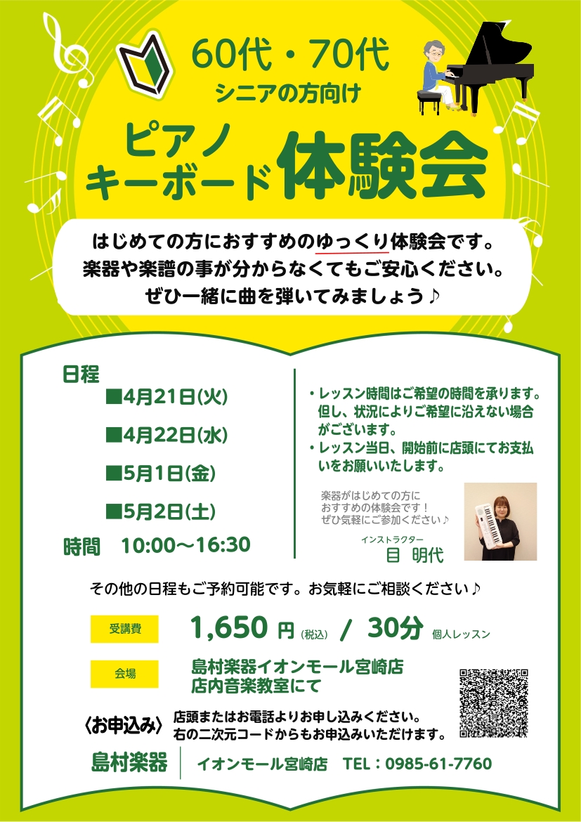 【シニアの方向け】ピアノ・キーボードゆっくり体験会のご案内