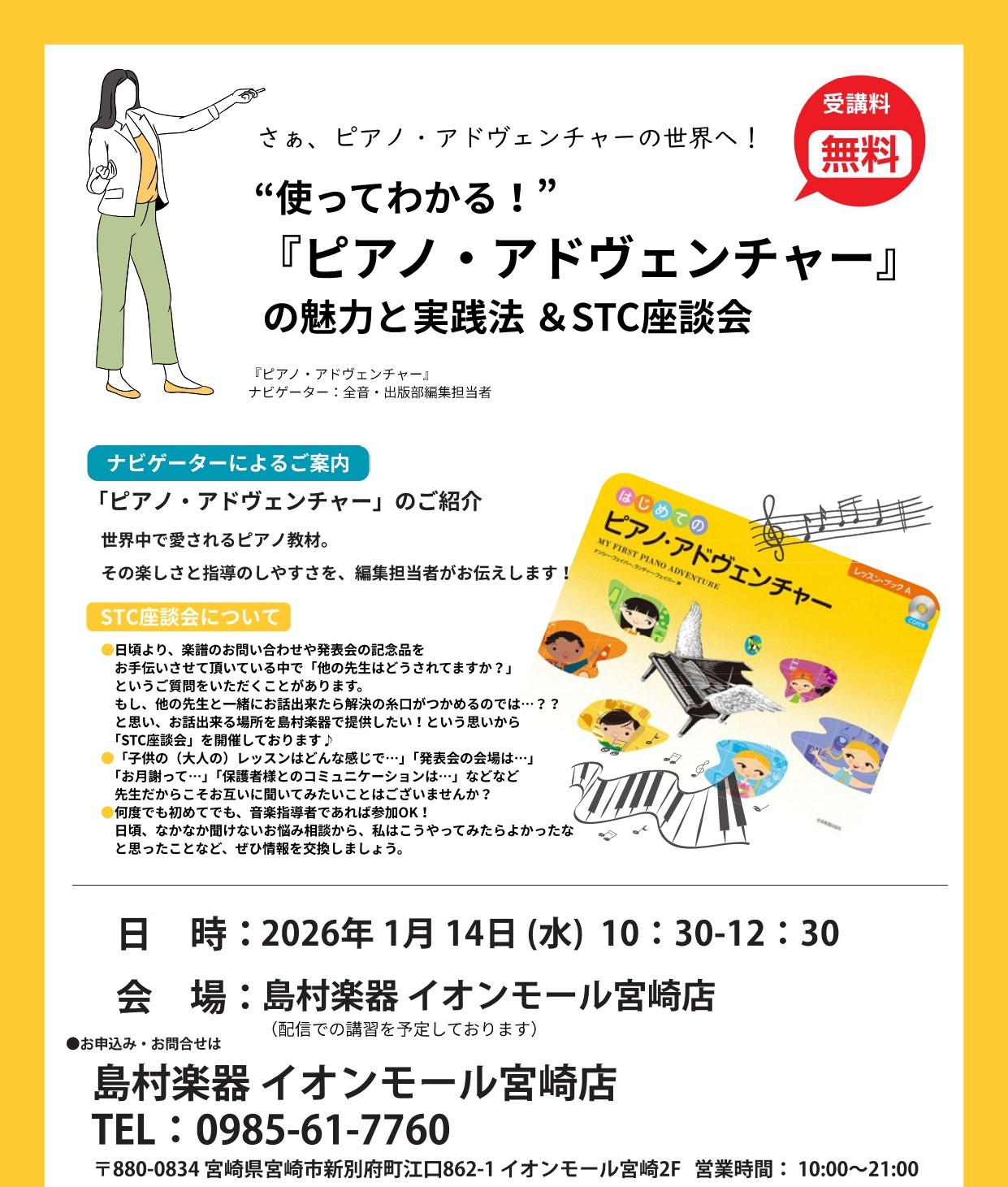 この度、島村楽器イオンモール宮崎店では「ピアノアドベンチャーナビ&STC座談会」を開催致します!
