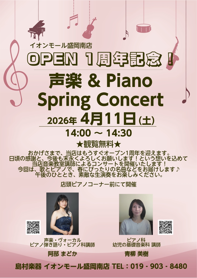 ![皆さん、こんにちは!島村楽器イオンモール盛岡南店です。 2025年4月25日にオープンしてから早いもので、このたび無事に「オープン1周年」を迎えることができました!岩手県内をはじめ北東北にお住まいの音楽を愛する皆様に支えられスタッフ一同、心より感謝申し上げます。 この1年間の感謝の気持ちをギュッと詰 […]](https://www.shimamura.co.jp/shop/moriokaminami/wp-content/uploads/sites/215/2026/04/20260407-1f3fbc7fd2784bbd677e31534ebd23df.jpg)