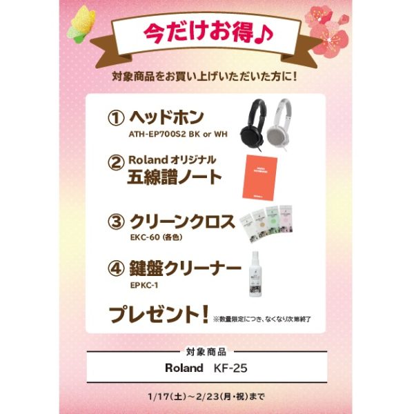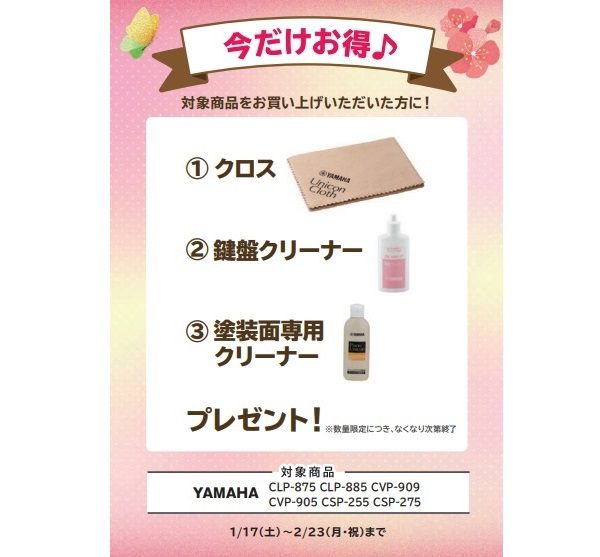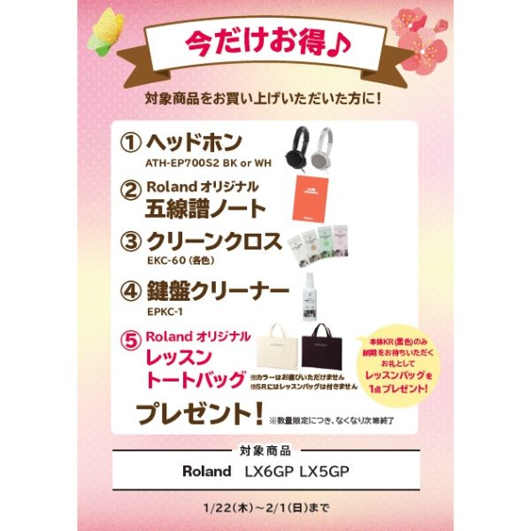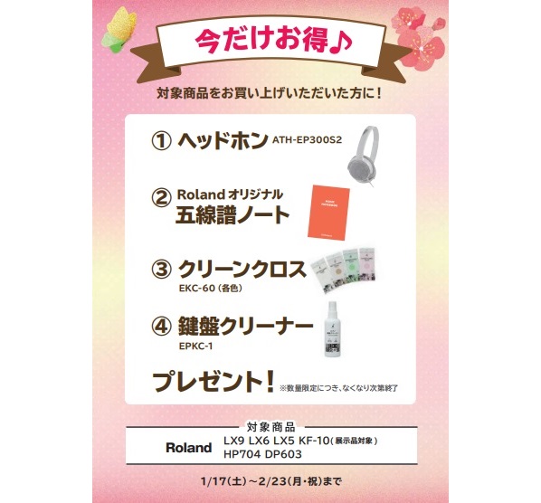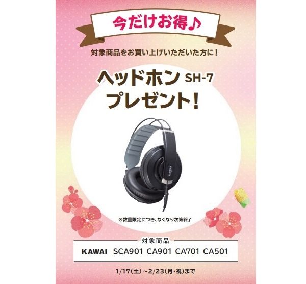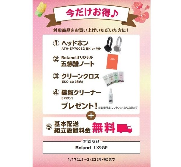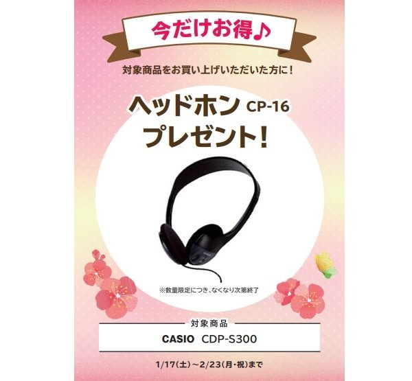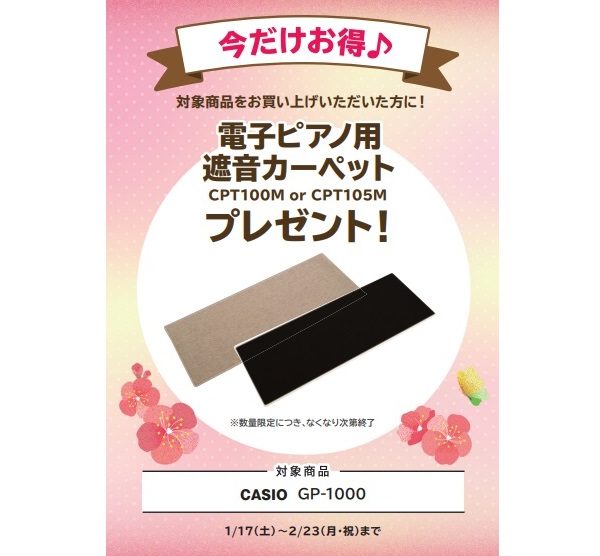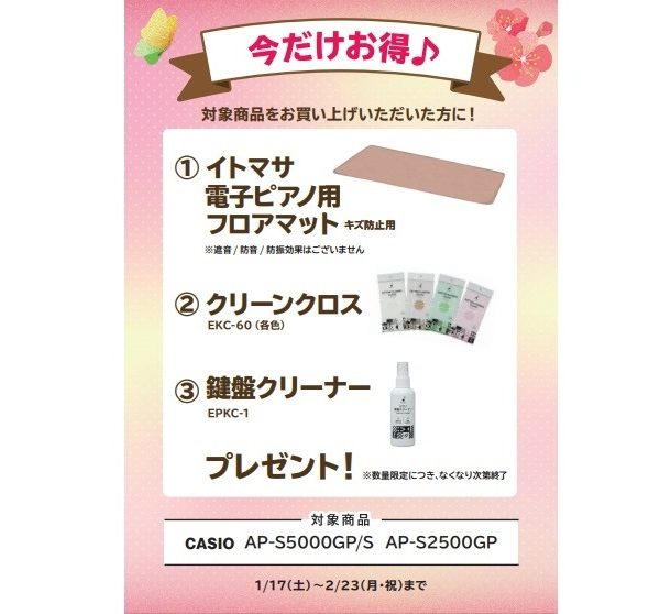 電子ピアノ購入特典が盛りだくさん!2月23日(月祝)まで