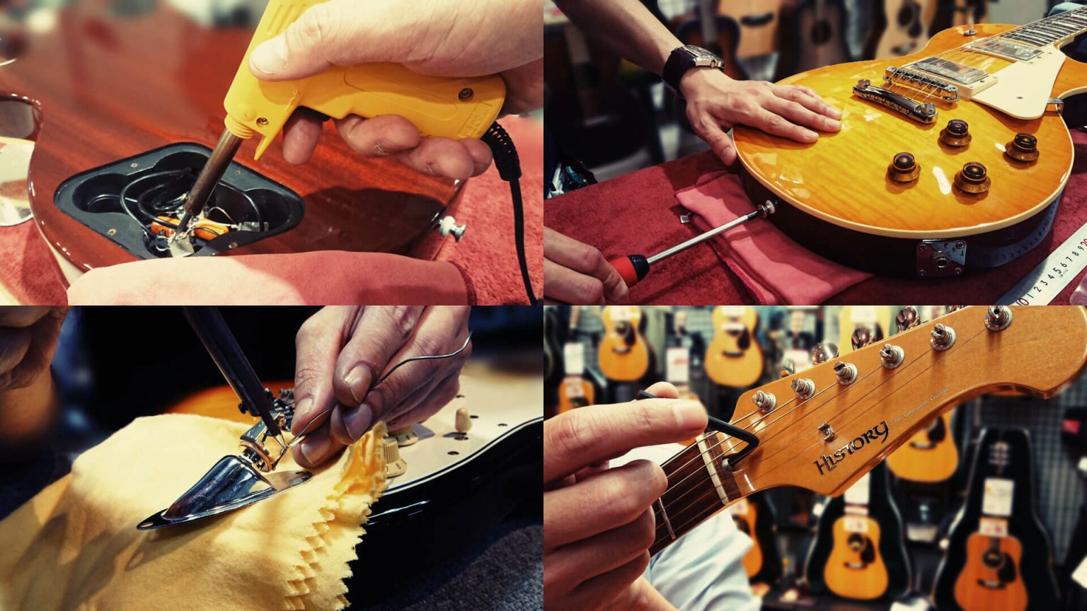 ギターは長く付き合うパートナー。当店にはメンテナンス技術を持つスタッフが常駐しており、日々のコンディションチェックを行っています。