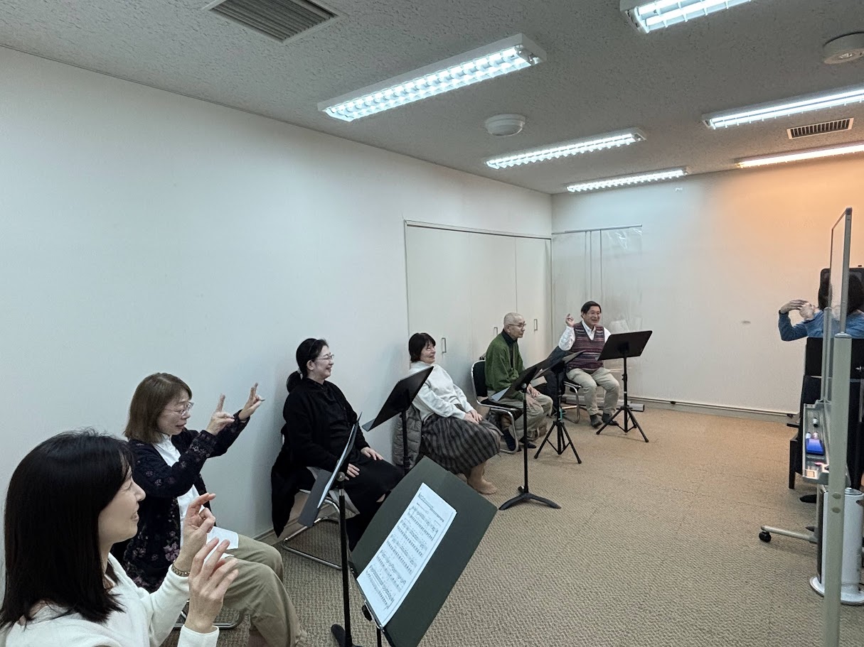 目指すのは、百歳まで歌うことのできるのどです。合唱団でお歌いになっている方には、まわりと溶け合う声を出す発声をトレーニングしてまいります。