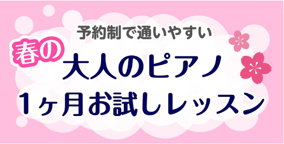 【予約制で通いやすい】春の大人のピアノ1ヶ月お試しレッスン
