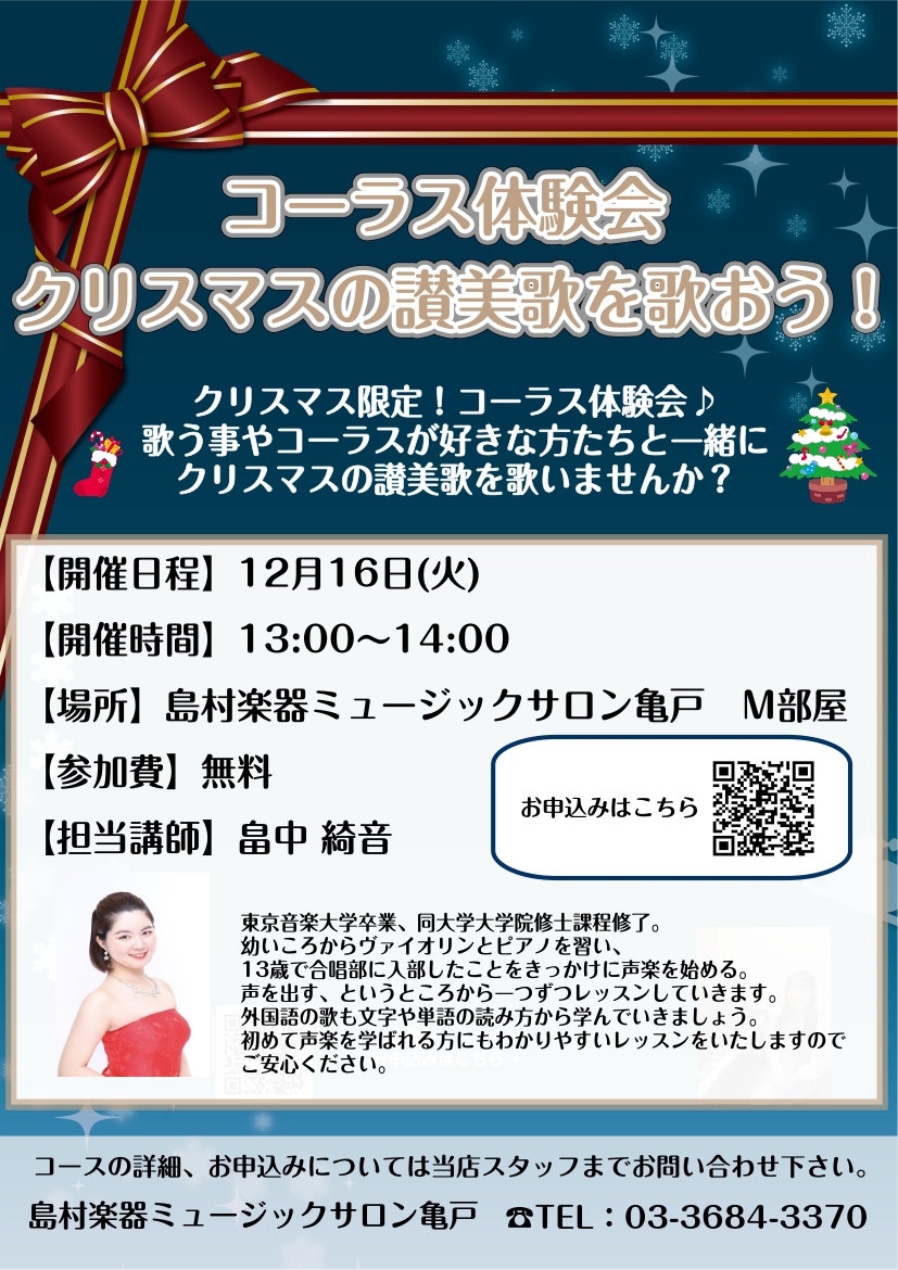 コーラス体験会 クリスマスの讃美歌を歌おう!|江東区亀戸|大島|墨田区|江戸川区