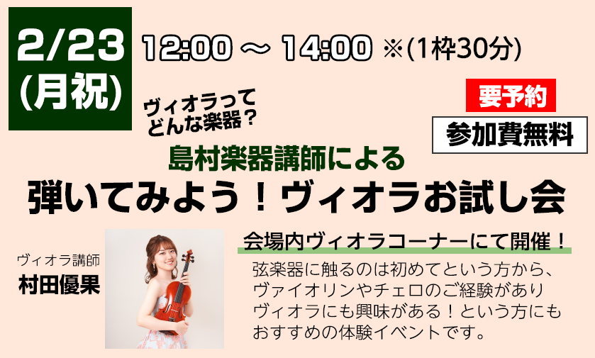 弾いた瞬間の驚き!あなたの可能性を引き出す弦楽器やアイテムが勢揃い 島村楽器ミュージックサロン亀戸セミナールームにて、2026年2月21日・22日・23日の3日間、弦楽器フェアを開催いたします。期間中はバイオリン・チェロ・弓・アクセサリーの展示に加え、様々なイベントプログラムを予定しております。 弦 […]