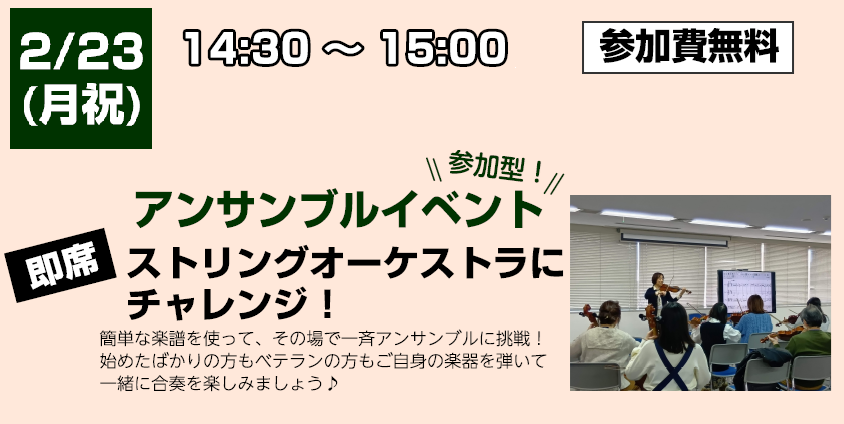 お客様参加型アンサンブルイベント「即席ストリングオーケストラにチャレンジ!」