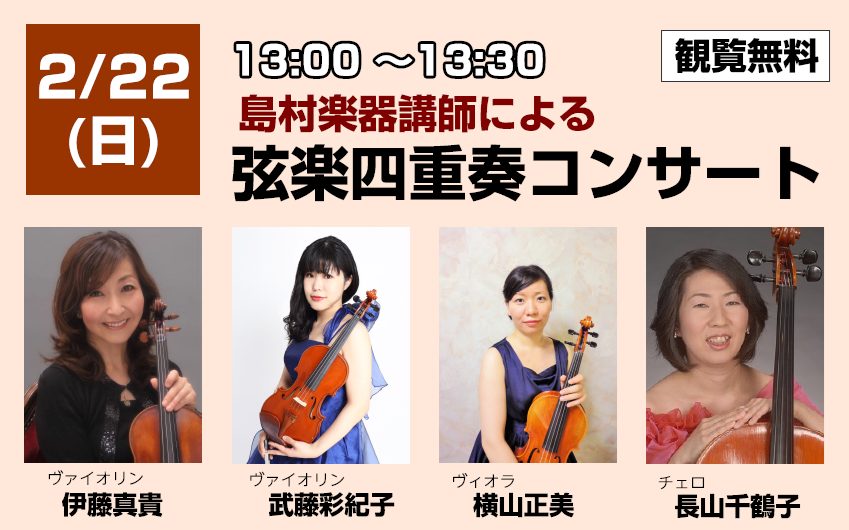 島村楽器ミュージックサロン亀戸セミナールームにて、2026年2月21日・22日・23日の3日間、弦楽器フェアを開催いたします。