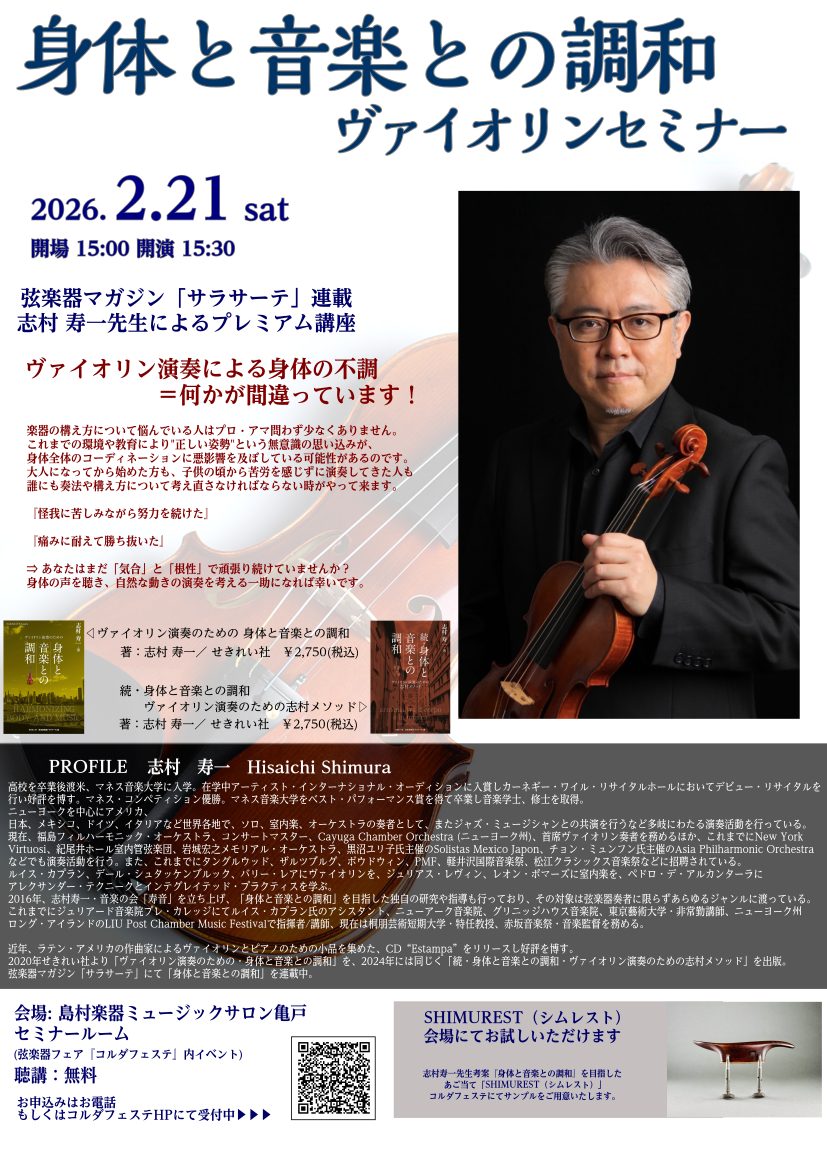 志村 寿一先生プレミアム講座『身体と音楽との調和』ヴァイオリンセミナー【コルダフェステ イベント情報】