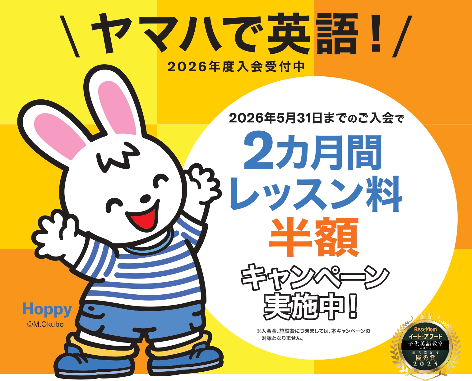 ヤマハ英語教室では、2026年5月31日までのご入会の方を対象に「2ヶ月間レッスン料半額」キャンペーンを実施中!