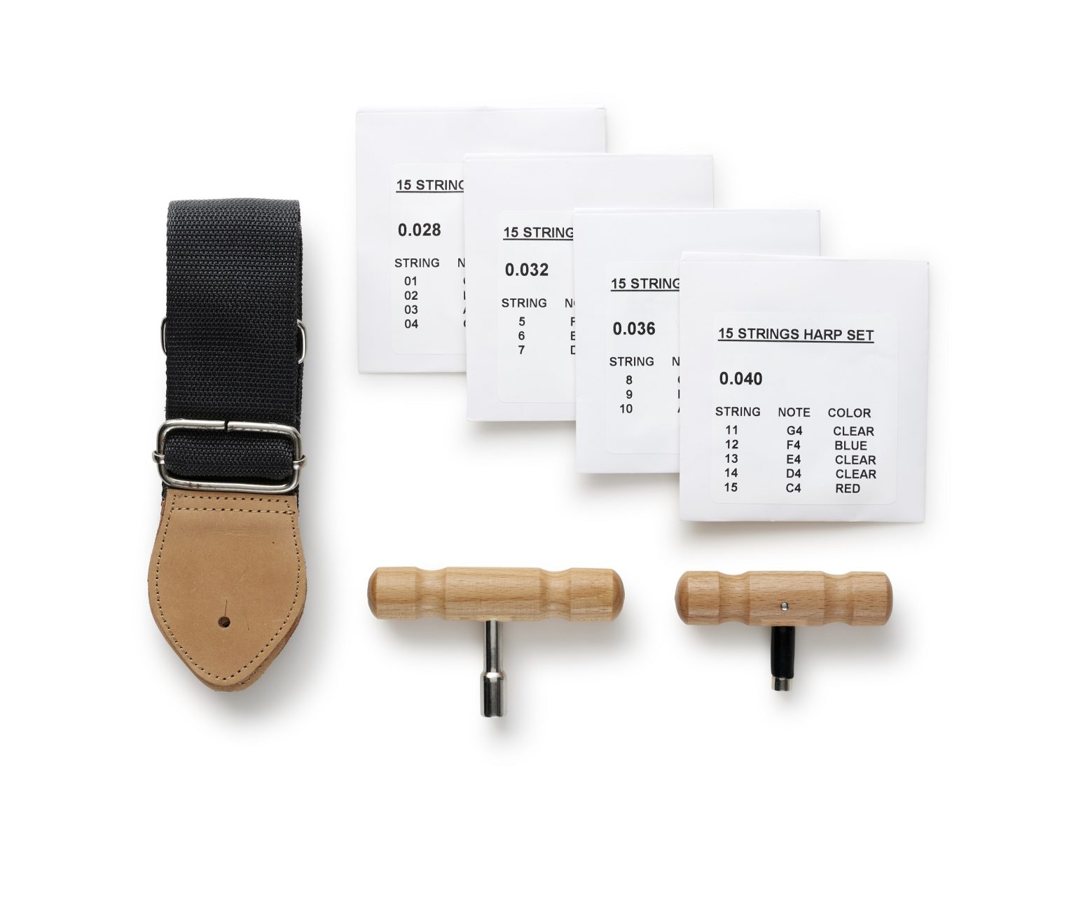 ストラップ、交換弦、ブリッジハンマー、チューニングハンマーが付属。