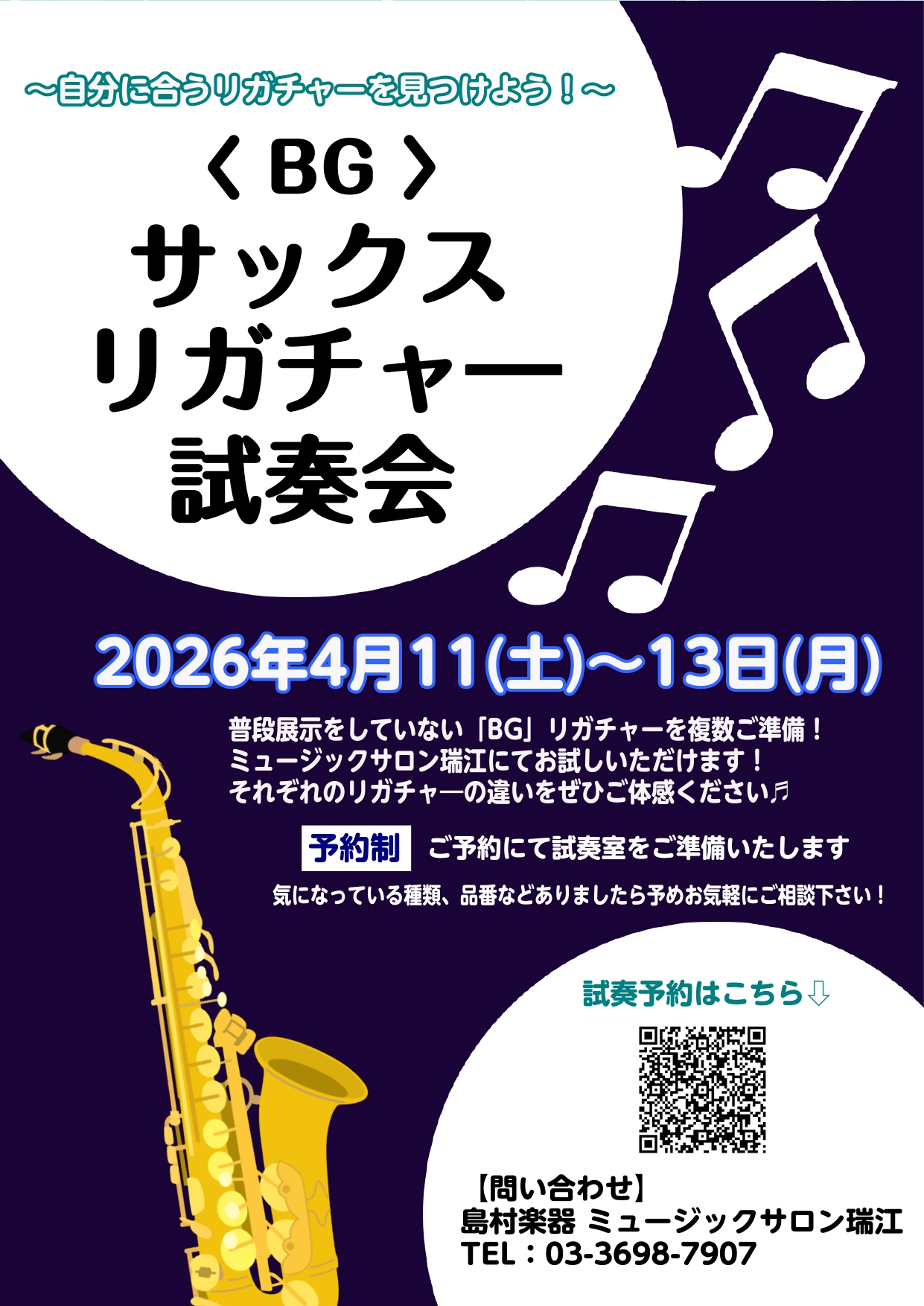 BG サックスリガチャー試奏会 開催します!