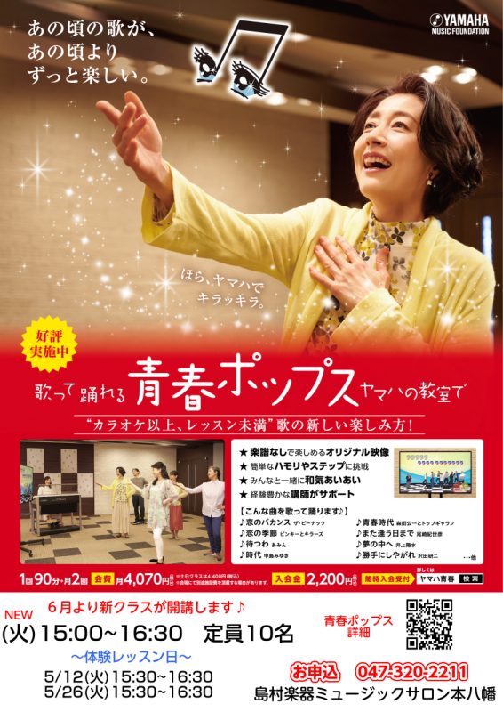【市川市本八幡ヤマハ青春ポップス】6月より新クラス が開講します!