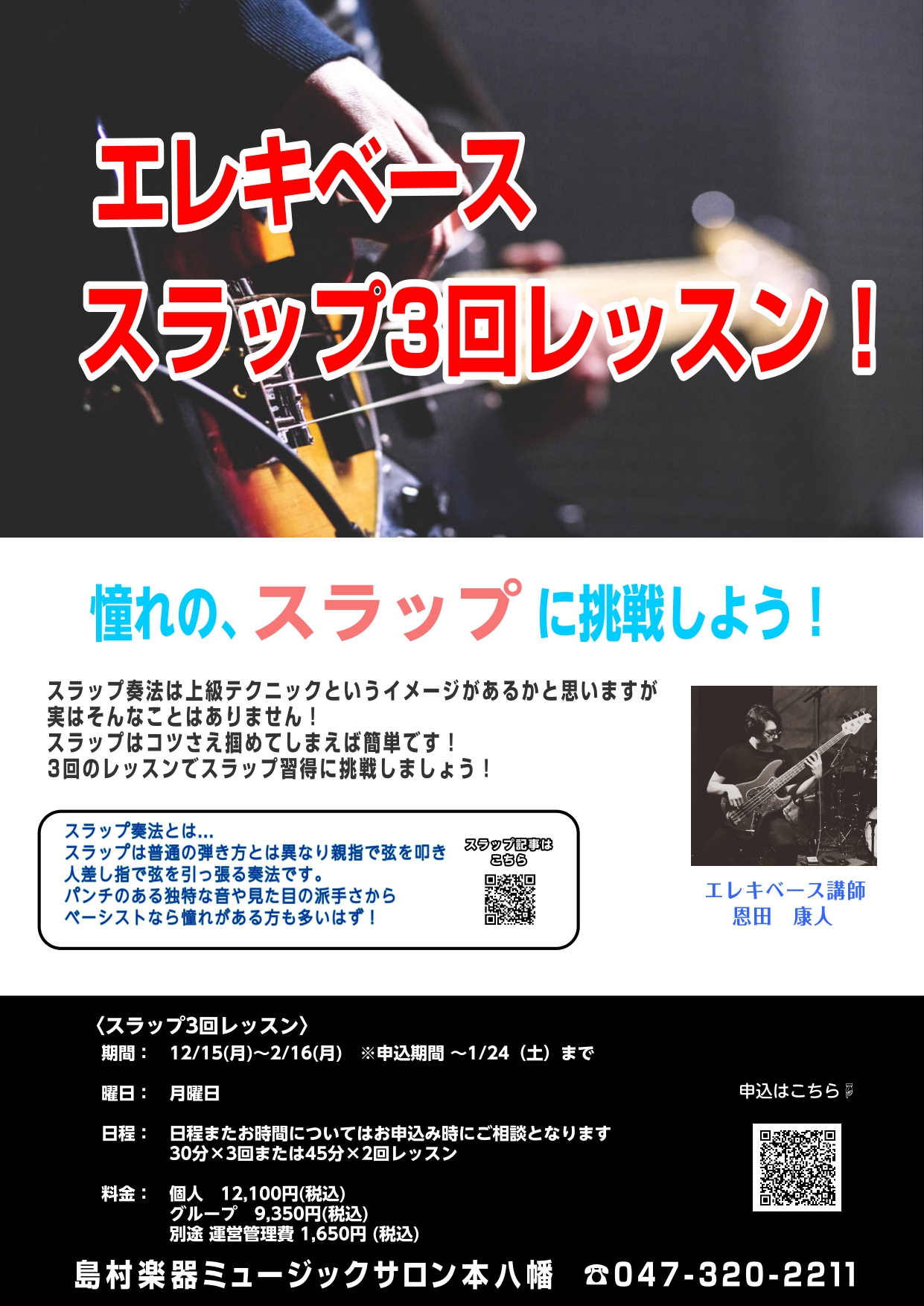実際に試してみるとスラップの楽しさをより感じることができると思います!皆様のお申し込みお待ちしております!