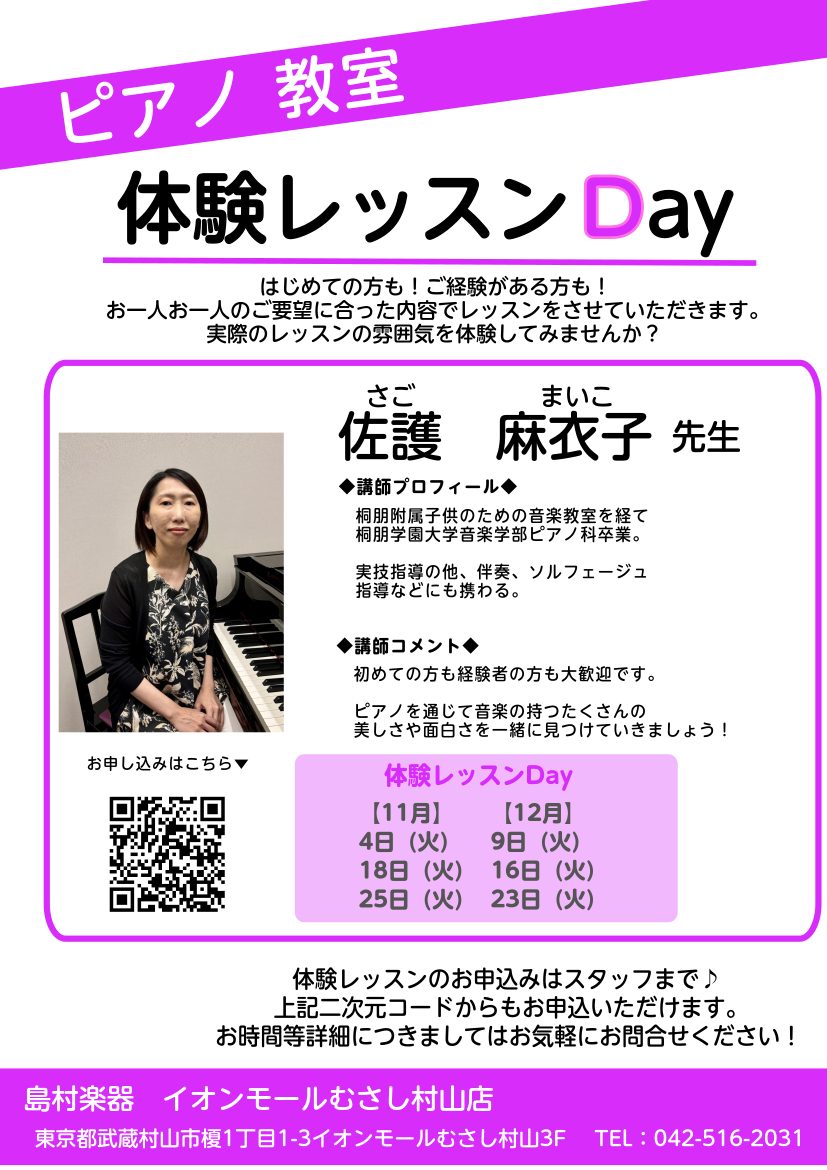 | 会場 | 島村楽器イオンモールむさし村山店内レッスンルーム |