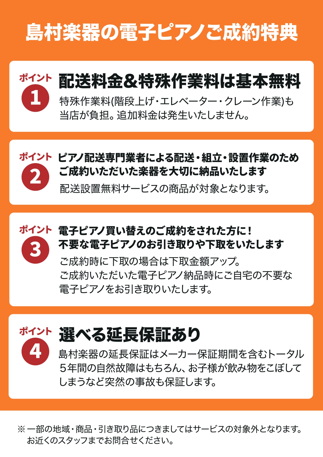 *アップライト型(100kg以上の電機ピアノなど)、エレクトーンは処分料が発生いたします。