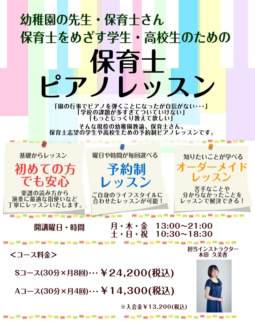 ![ピアノサロン インストラクター紹介 本田 久美香(ほんだ くみか) 担当曜日:月・木・金・土・日 皆さまこんにちは!島村楽器仙台長町モール店 ピアノインストラクターの本田 久美香です。仙台長町モール店では保育士試験 実技対策レッスンを行っております!それぞれのお悩みに合わせたレッスンを行っております […]](https://www.shimamura.co.jp/shop/nagamachi/wp-content/uploads/sites/16/2024/12/20241222-img_6274.jpg)