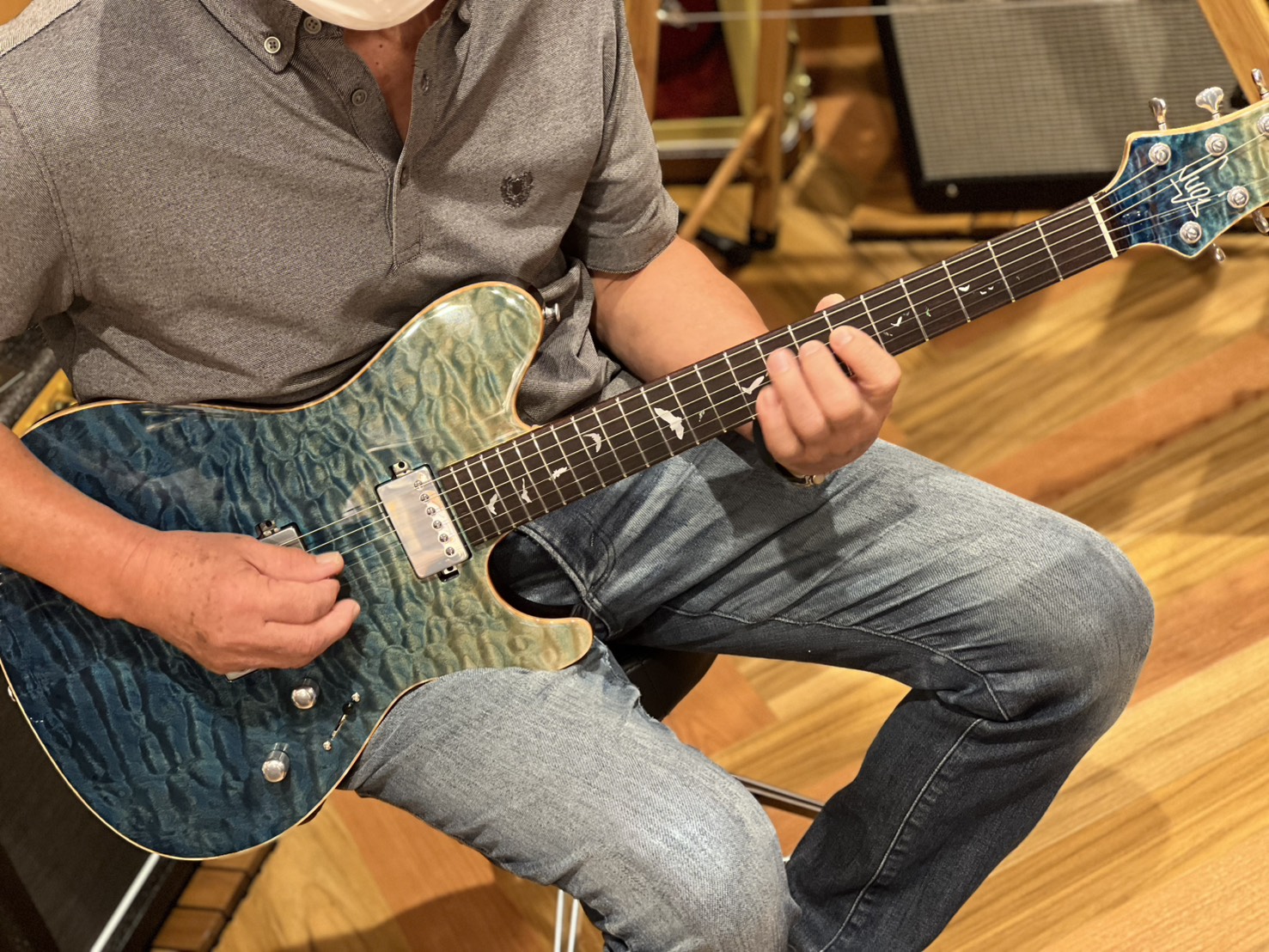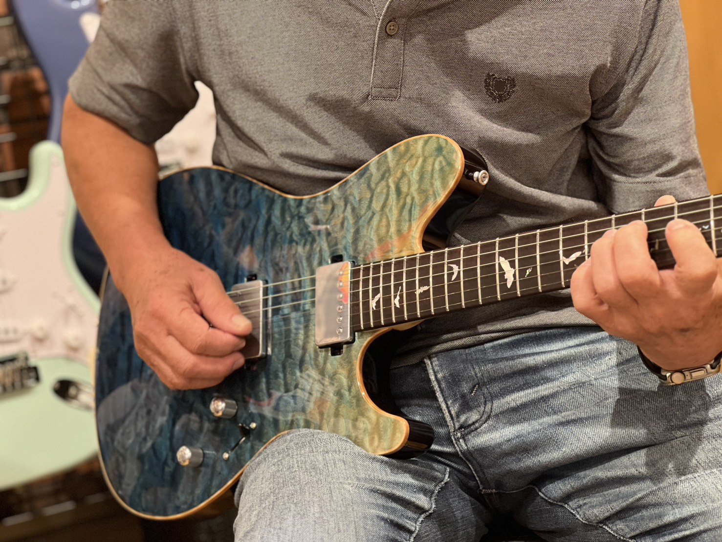 ボディには圧倒的な美しさを誇る6Aグレードのキルトメイプルをトップに採用。ネックにはインディアンローズウッドを使用し、指板には同ブランドのロゴにもある「コウモリ」の形をあしらった「バットインレイ」を装飾。Sugi Guitarsらしさをご紹介するにあたり欠かせないスペックとしました。ピックアップには同ブランド定番のハイパワーピックアップ「LH-35」をフロント、リアに搭載しジャンルを選ばない多彩なシーンに対応します。そしてマスタービルダー杉本眞氏が手がける美しいカラーリング。美しいブルーのグラデーションに仕上げていただきました。妥協のない、担当者がおすすめしたい”Sugi Guitarsらしさ”を詰め込んだスペックとなっています。