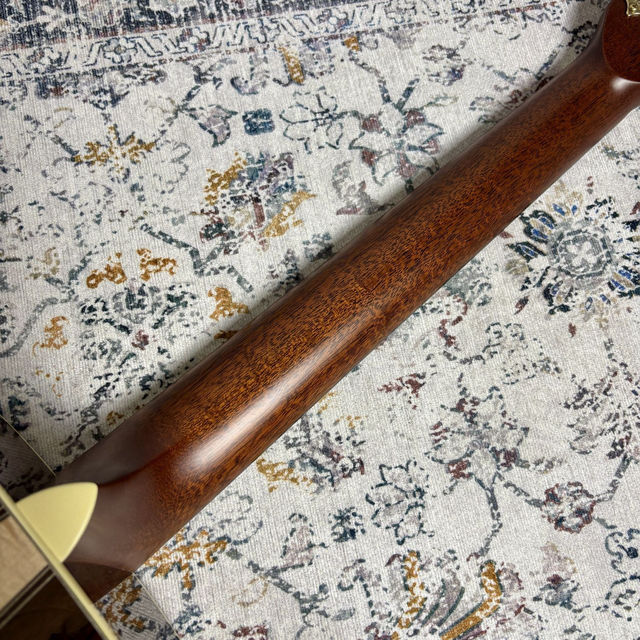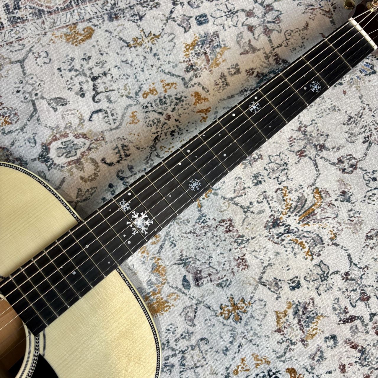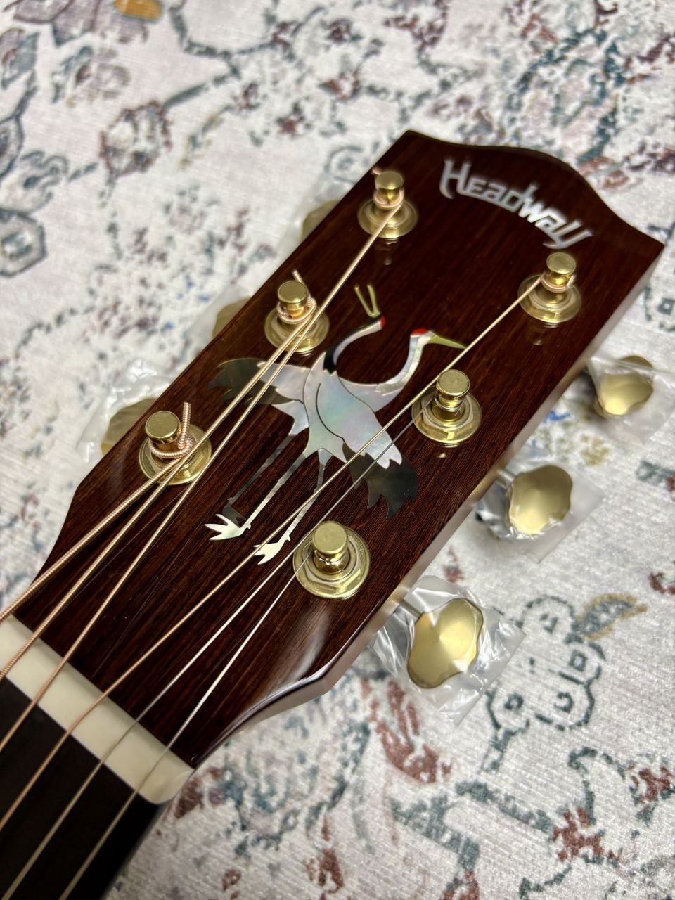 ヘッドに丹頂鶴をあしらったこのモデルはカスタムショップビルダー『降旗 新』氏の手によって製作された須坂店のオーダーモデルになります。TOP材に稀少なアディロンダックスプルースを使用した特別モデル。煌びやかなサウンドを奏でます