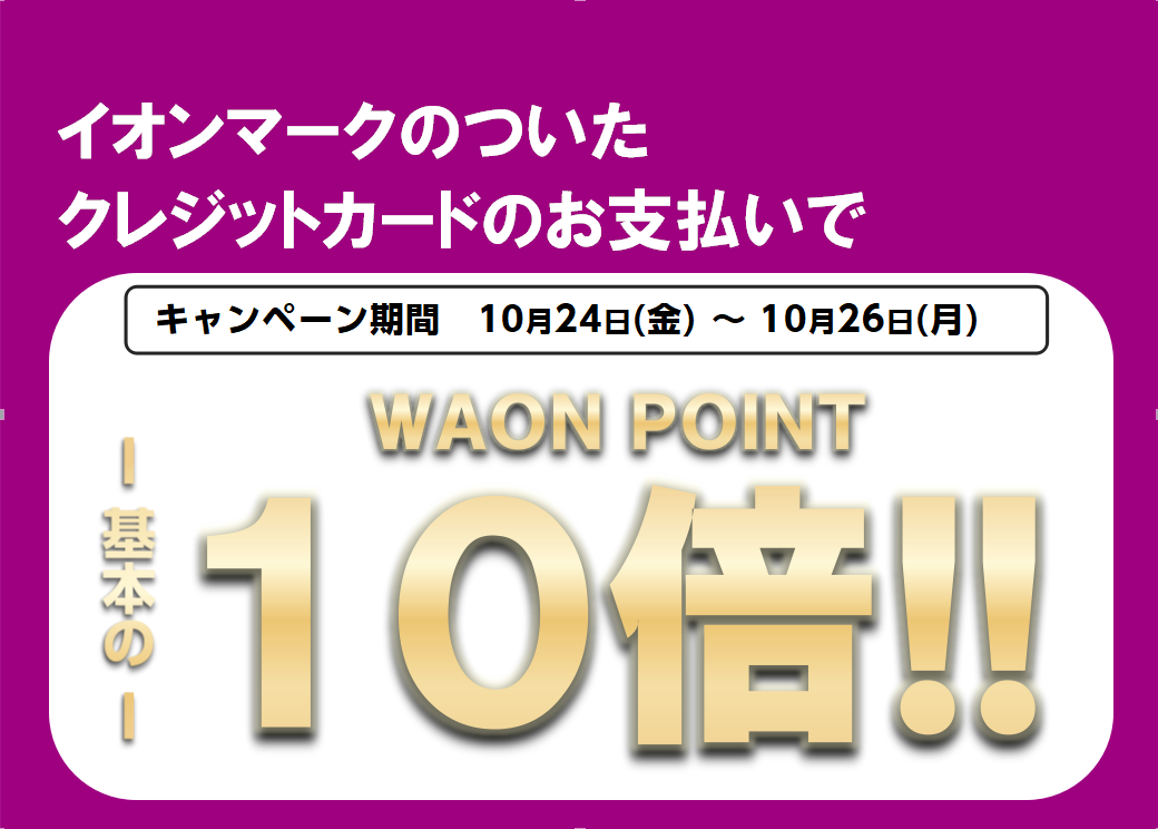 【緊急】10/24日(金)~10/26日(月)までWAON POINT10倍!!