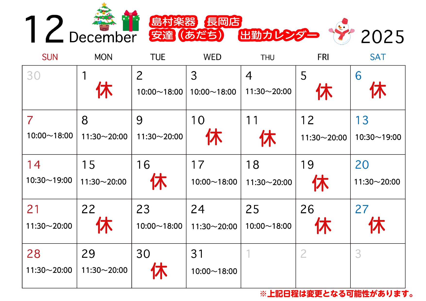 【超お得】年末の島村楽器は大きなお買物ほどお得!!2025年12月開催予定のキャンペーン・セール一覧【島村楽器イオン長岡店】
